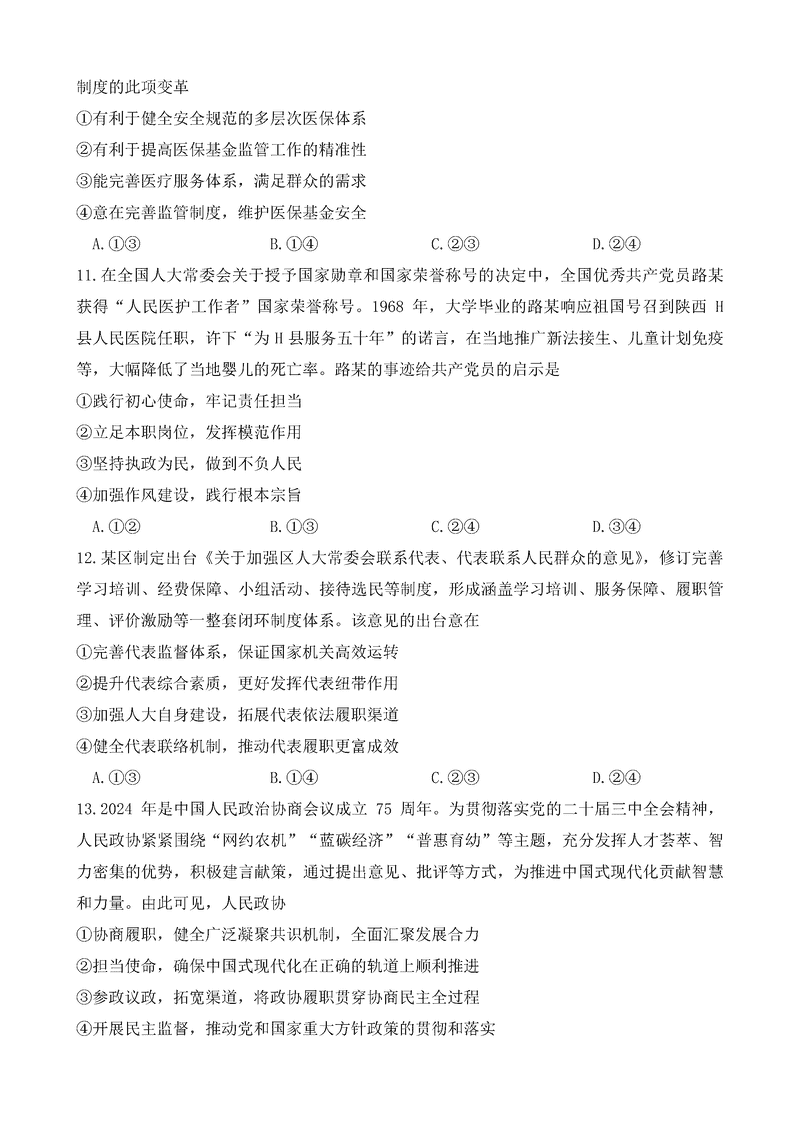 青海省金太阳2025届高三上学期11月联考政治试题及答案