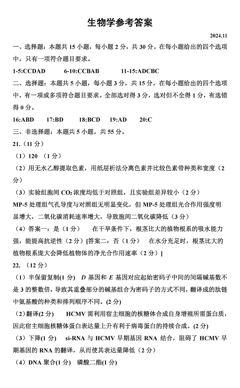 内蒙古赤峰市2024年11.20高三模拟生物考试已于近日开考,为方便考生考后及时查看考试情况,查漏补缺、弥补不足,本文整理了试题答案解析相关信息!