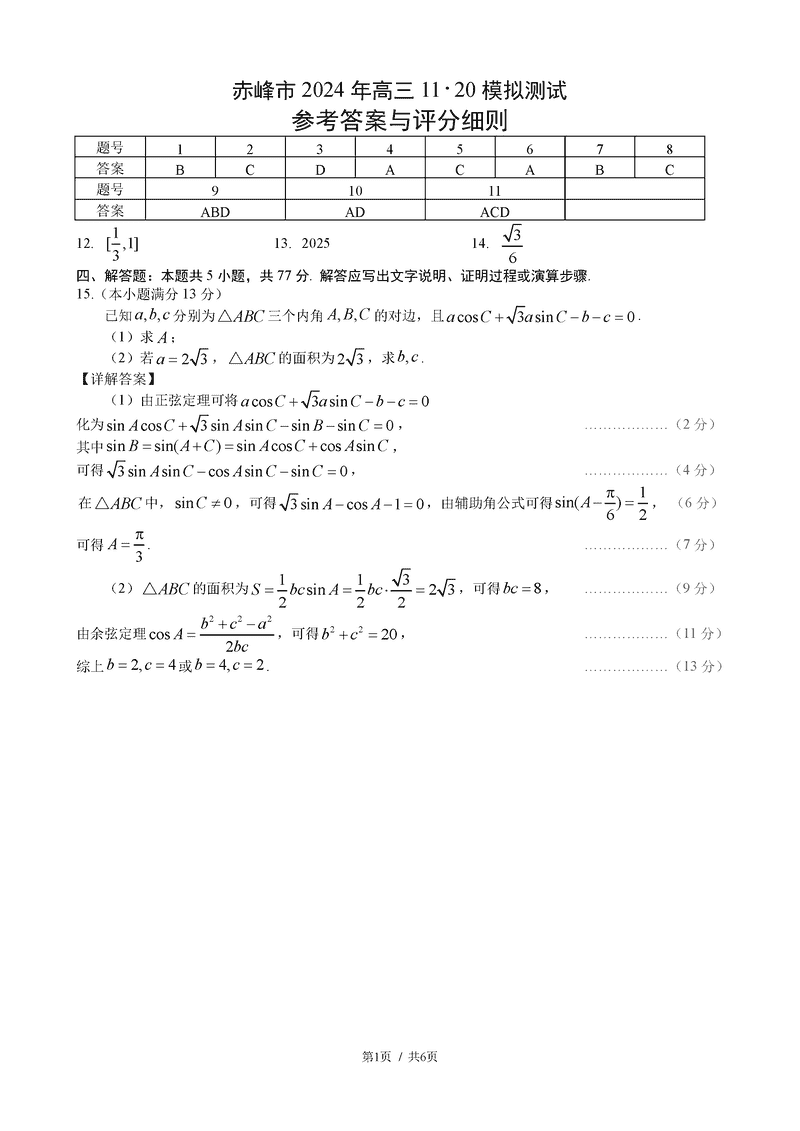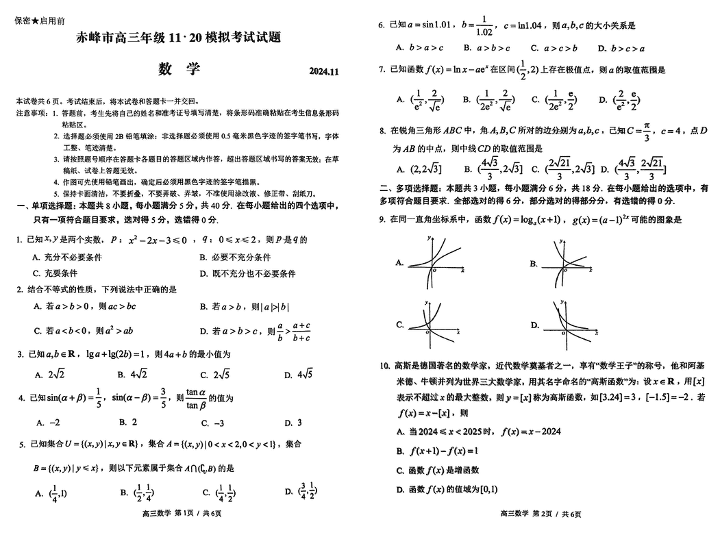 内蒙古赤峰市2024年11.20高三模拟数学考试已于近日开考,为方便考生考后及时查看考试情况,查漏补缺、弥补不足,本文整理了试题答案解析相关信息!