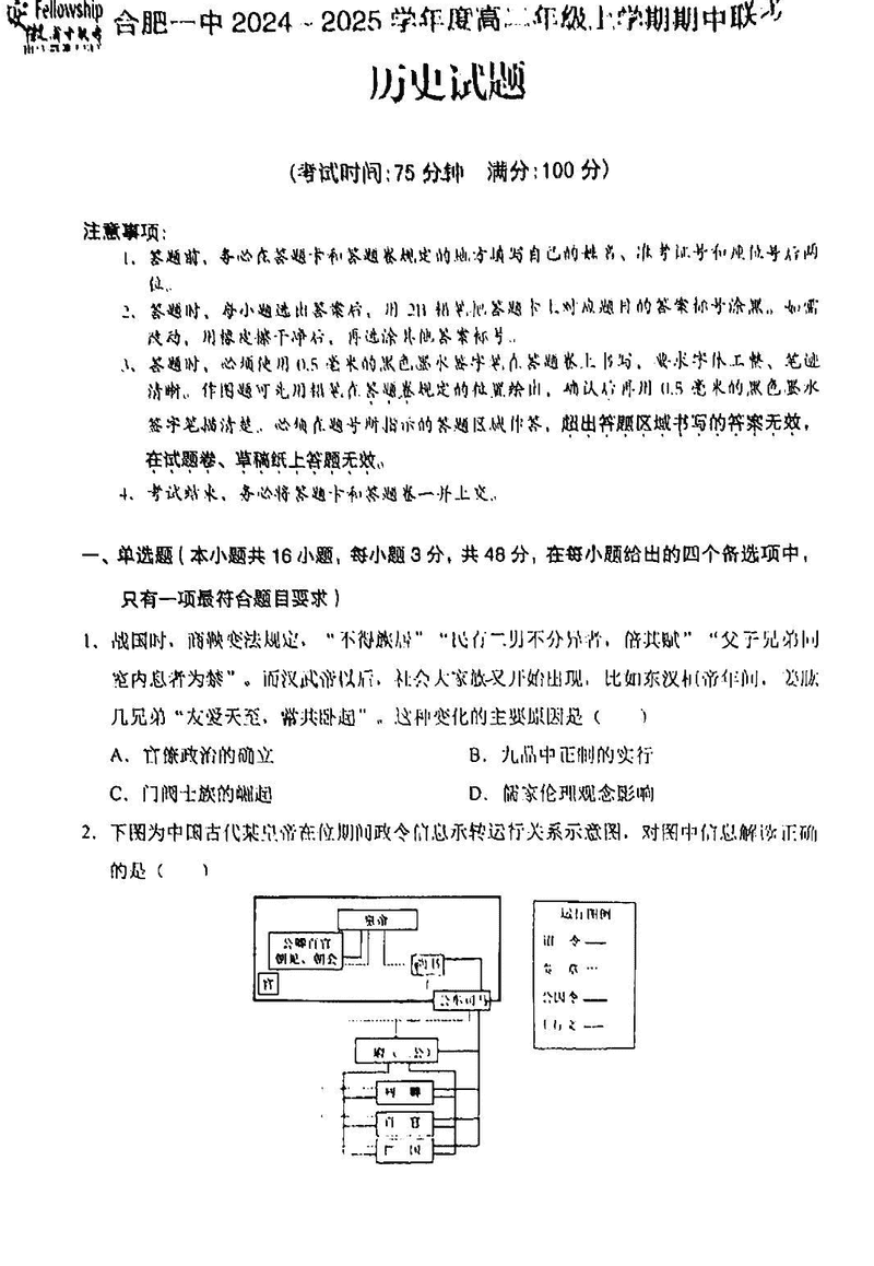 安徽省十联考合肥一中2024年11月高二期中历史试题及答案 时间:2024-11-25 16:18 安徽 高中历史 安徽省十联考合肥一中2024年11月高二期中历史考试已于近日开考,为方便考生考后及时查看考试情况,查漏补缺、弥补不足,本文整理了试题答案解析相关信息! 历史试题及答案解析