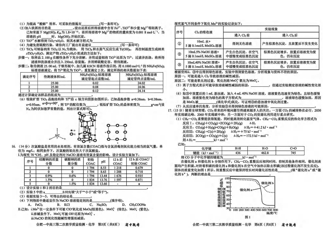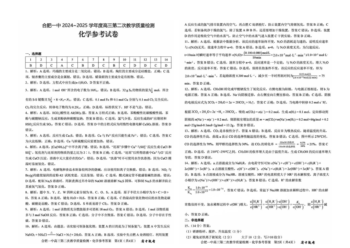 安徽省十联考合肥一中2025届高三11月第二次质检化学考试已于近日开考,为方便考生考后及时查看考试情况,查漏补缺、弥补不足,本文整理了试题答案解析相关信息!