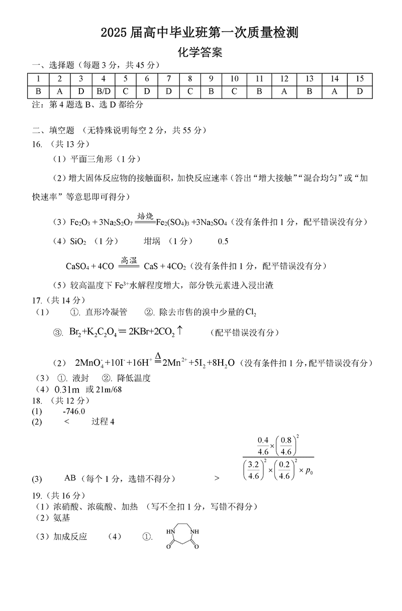 2025届东北三省一区名校联盟高三11月第一次质检化学试题及答案