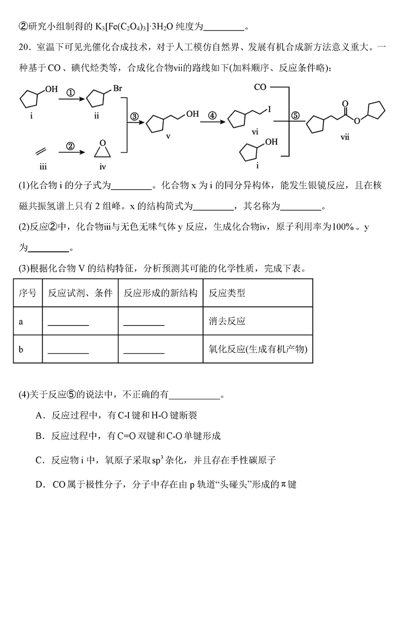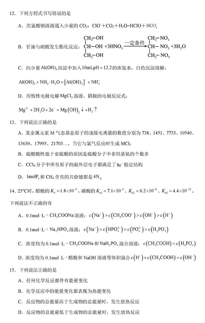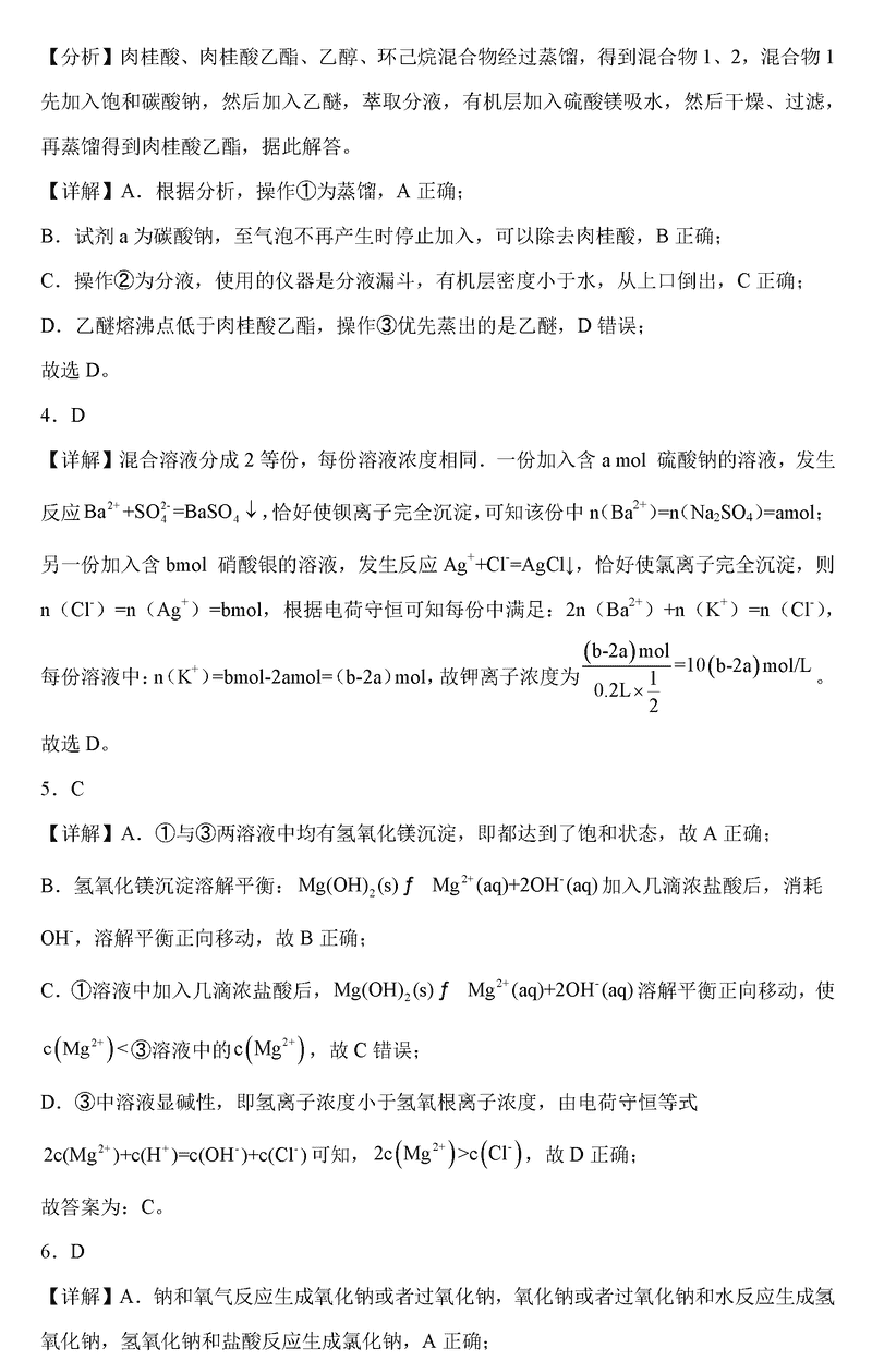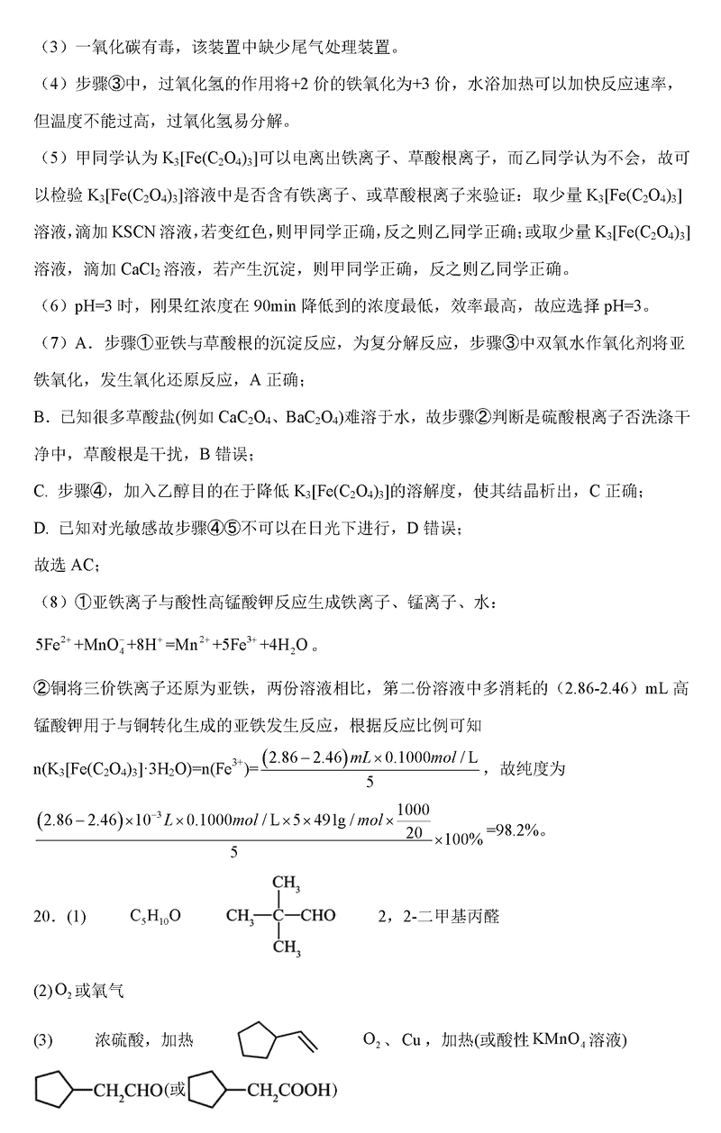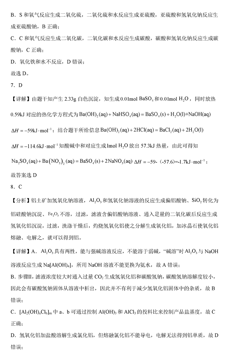 化学试题及答案解析