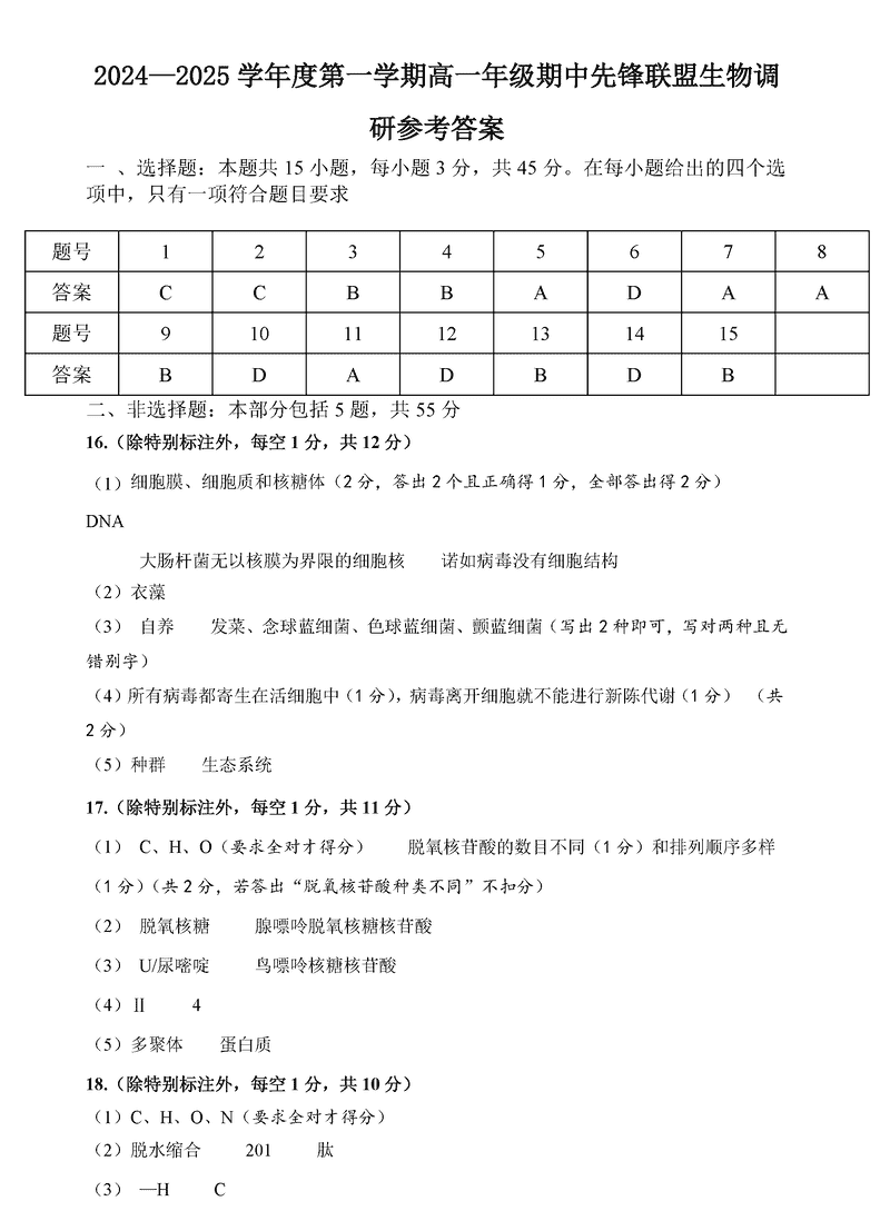 海南省先锋联盟2024-2025学年高一上学期11月期中生物考试已于近日开考,为方便考生考后及时查看考试情况,查漏补缺、弥补不足,本文整理了试题答案解析相关信息!