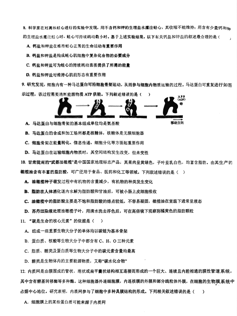 海南先锋联盟2024-2025学年高一上学期11月期中生物试题及答案