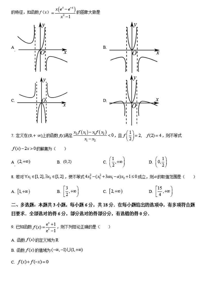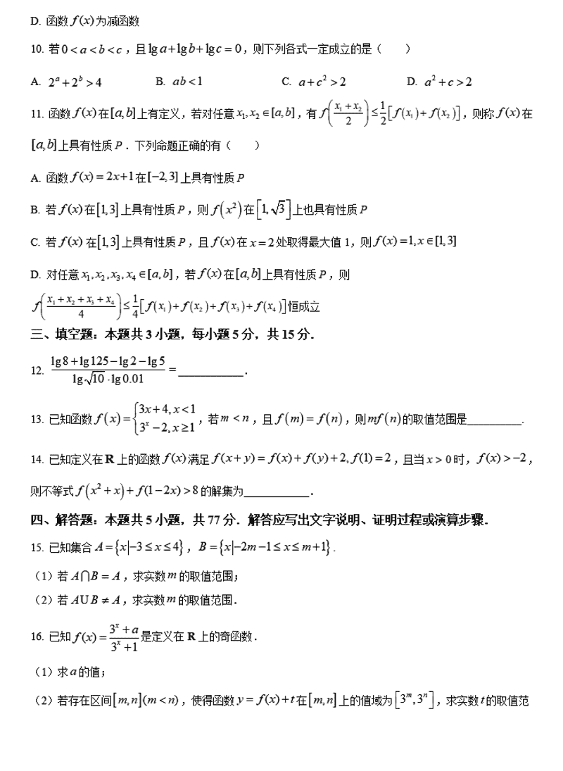 蚌埠市A层高中2024年11月高一第二次联考数学试题及答案