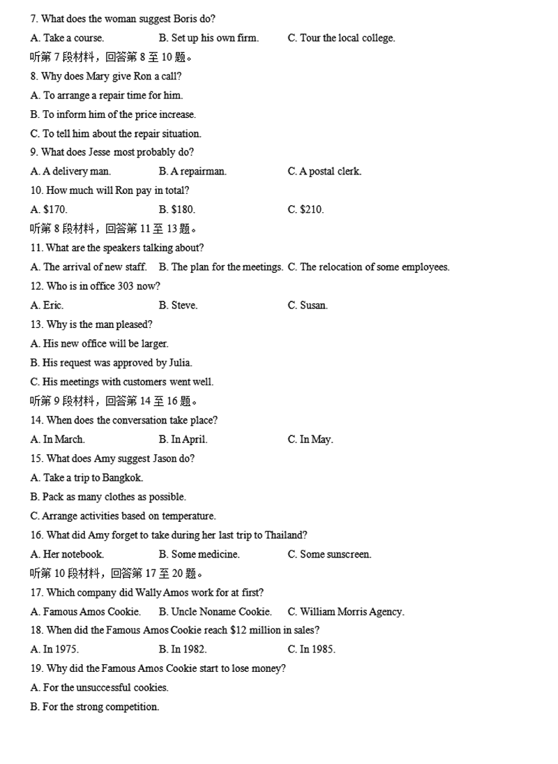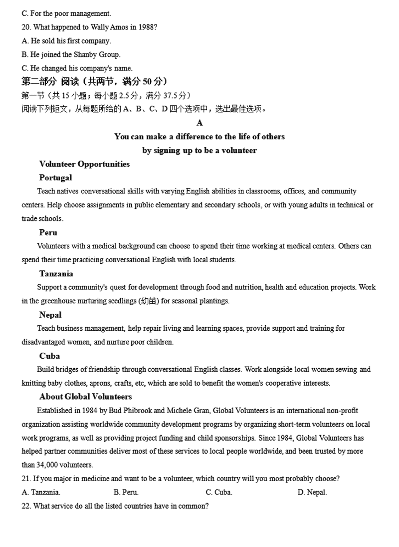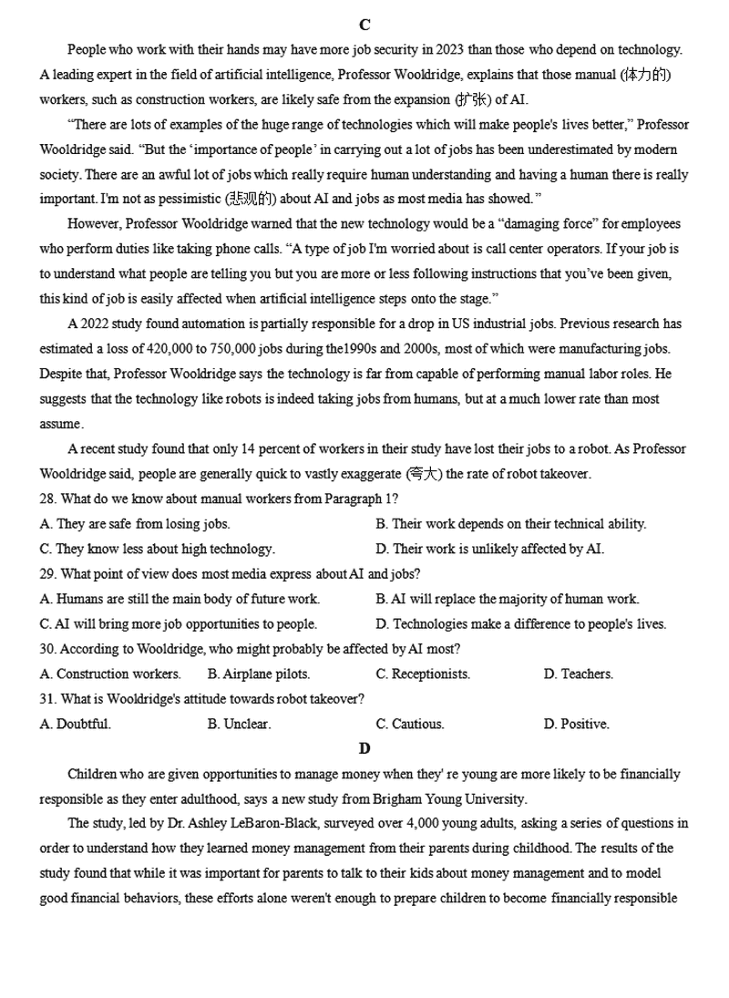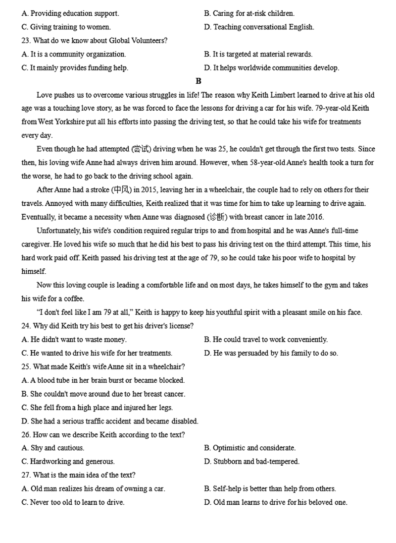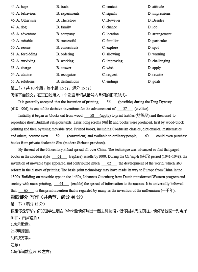 英语试题及答案解析