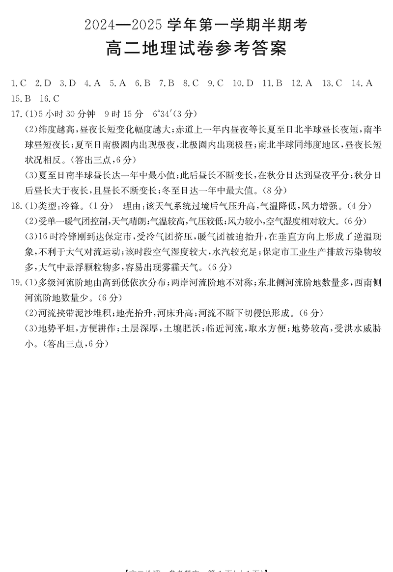福建省非一级达标校2024年11月高二第一学期半期考地理考试已于近日开考,为方便考生考后及时查看考试情况,查漏补缺、弥补不足,本文整理了试题答案解析相关信息!