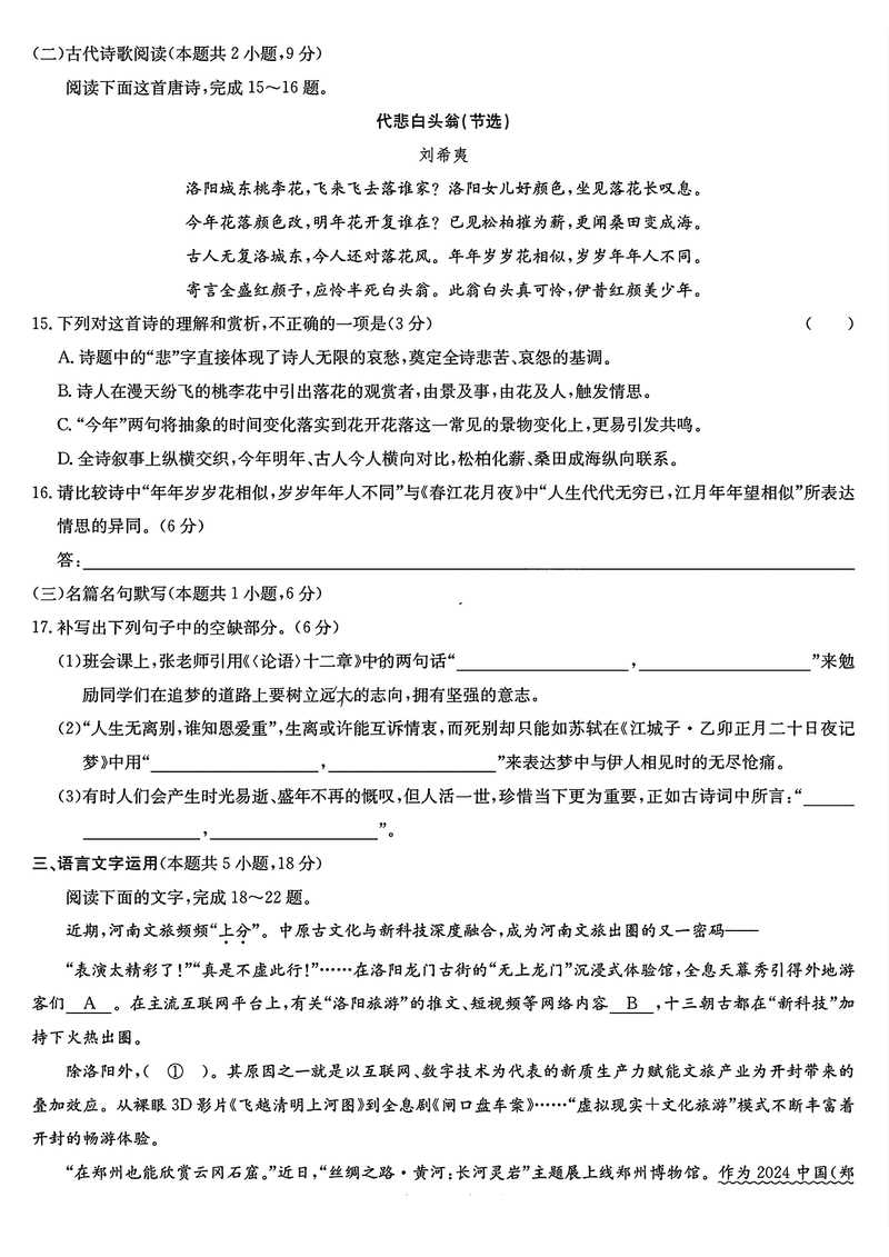 贵州九师联盟2024-2025学年高二上学期11月联考语文试题及答案