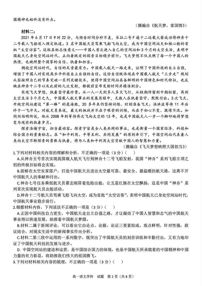 宁波三锋联盟2024年11月高一上学期期中语文试题及答案 时间:2024-11-26 22:15 浙江 高中语文 宁波市三锋联盟2024-2025学年高一上学期11月期中语文考试已于近日开考,为方便考生考后及时查看考试情况,查漏补缺、弥补不足,本文整理了试题答案解析相关信息! 语文试题及答案解析