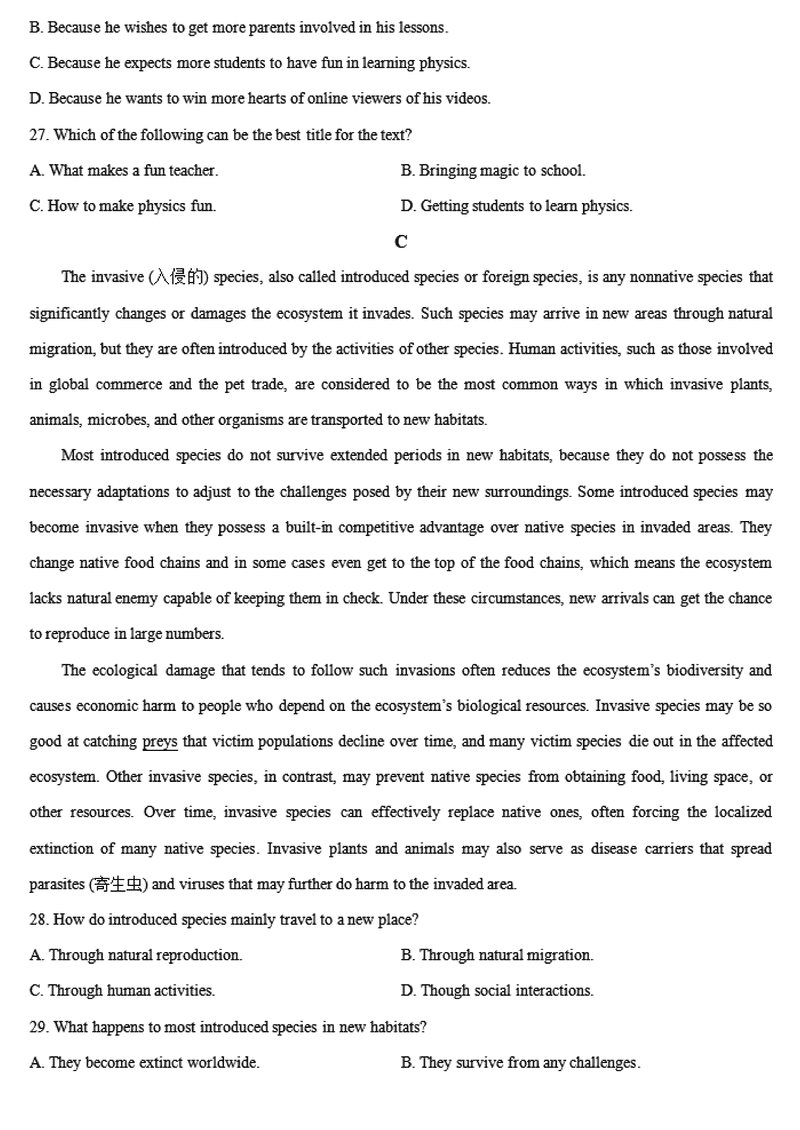 厦泉五校2024年11月高二上学期期中联考英语试题及答案