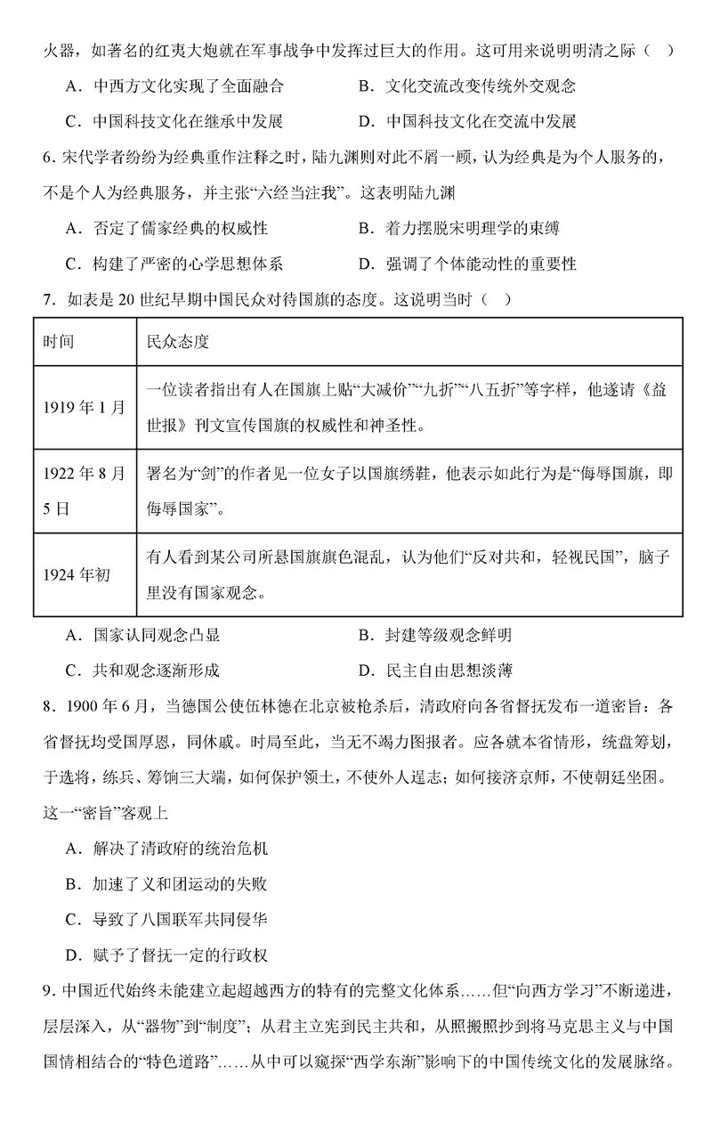 历史试题及答案解析
