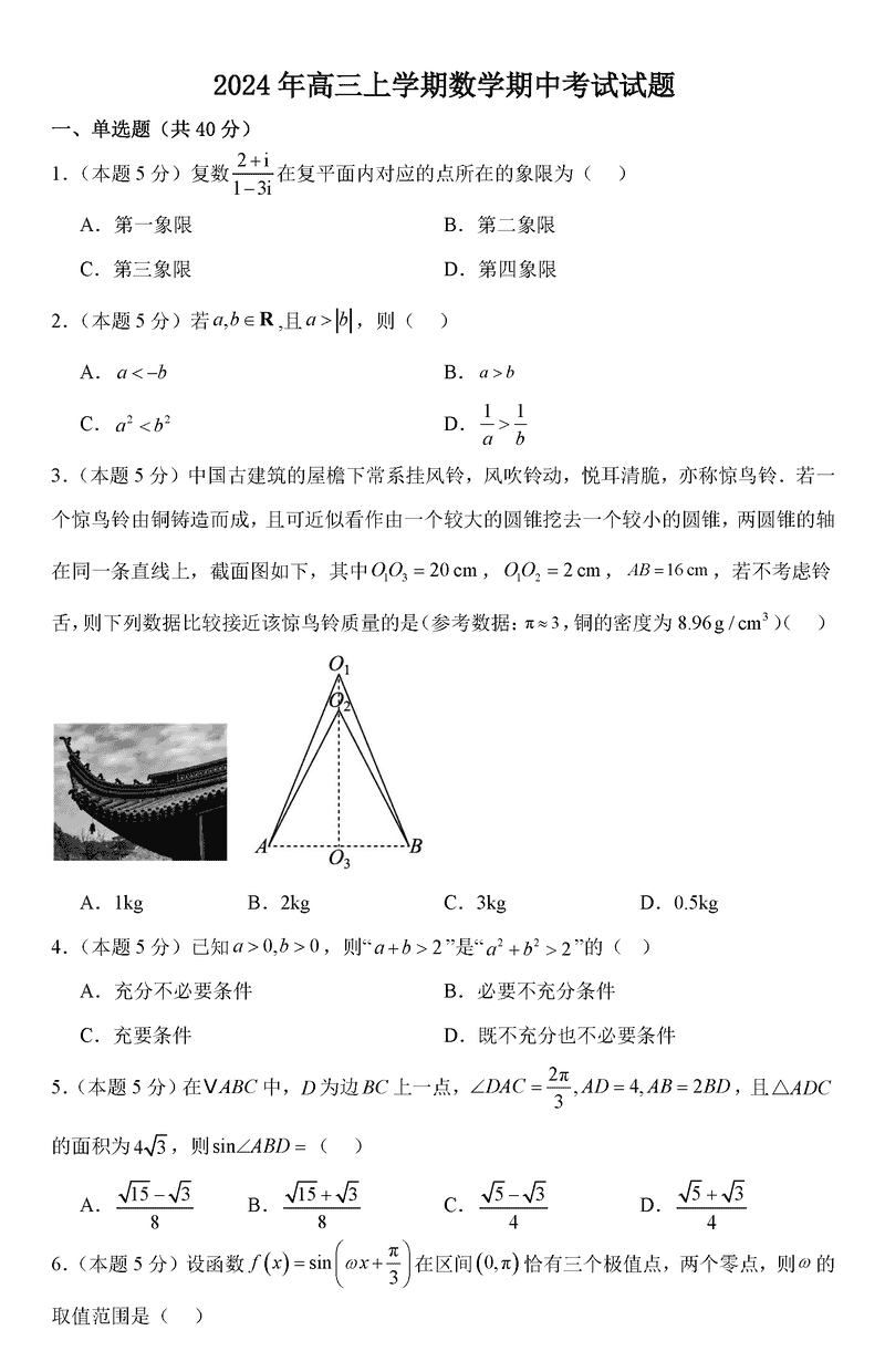 岳阳临湘2025届高三上学期11月期中数学试题及答案