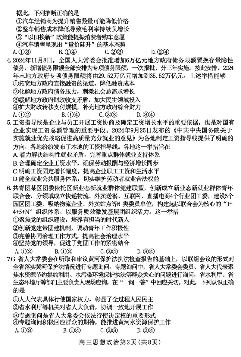 山东潍坊2024-2025学年高三上学期11月期中政治试题及答案