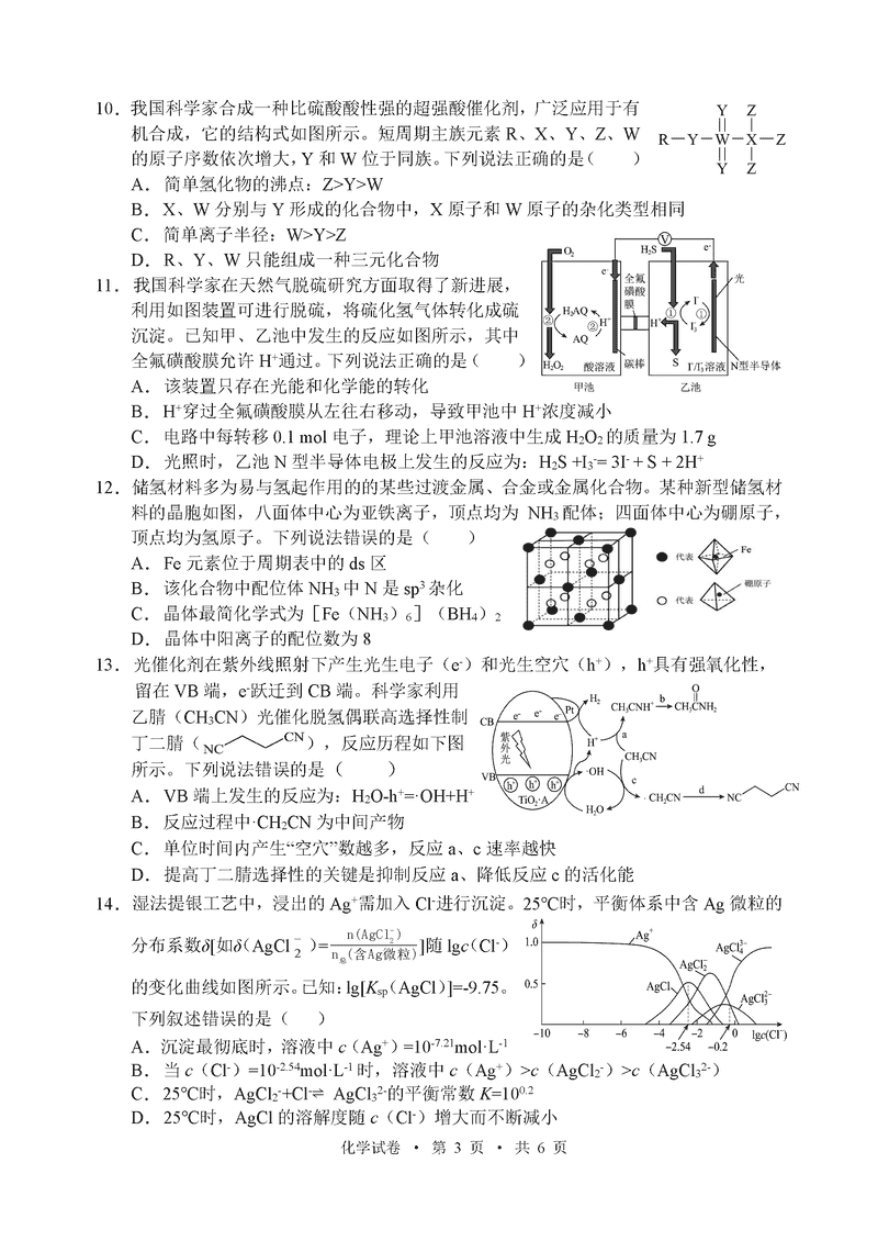 宁夏吴忠市2025届高三上学期学业水平适应性测试化学试题及答案