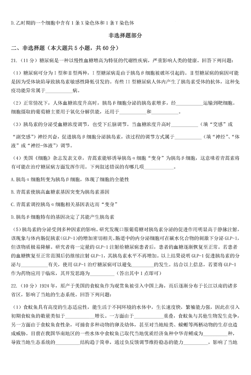 浙江稽阳联谊学校2024年11月高三上学期联考生物试题及答案