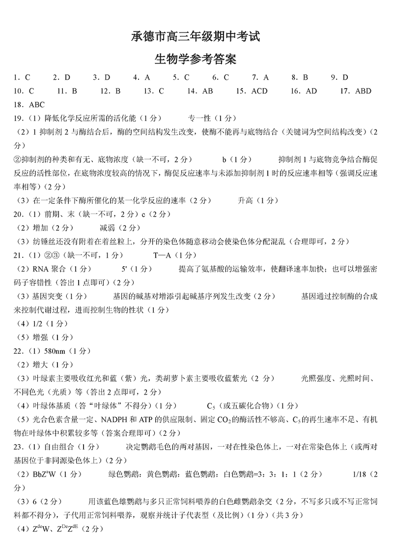 河北承德2024-2025学年高三上学期期中生物考试已于近日开考,为方便考生考后及时查看考试情况,查漏补缺、弥补不足,本文整理了试题答案解析相关信息!