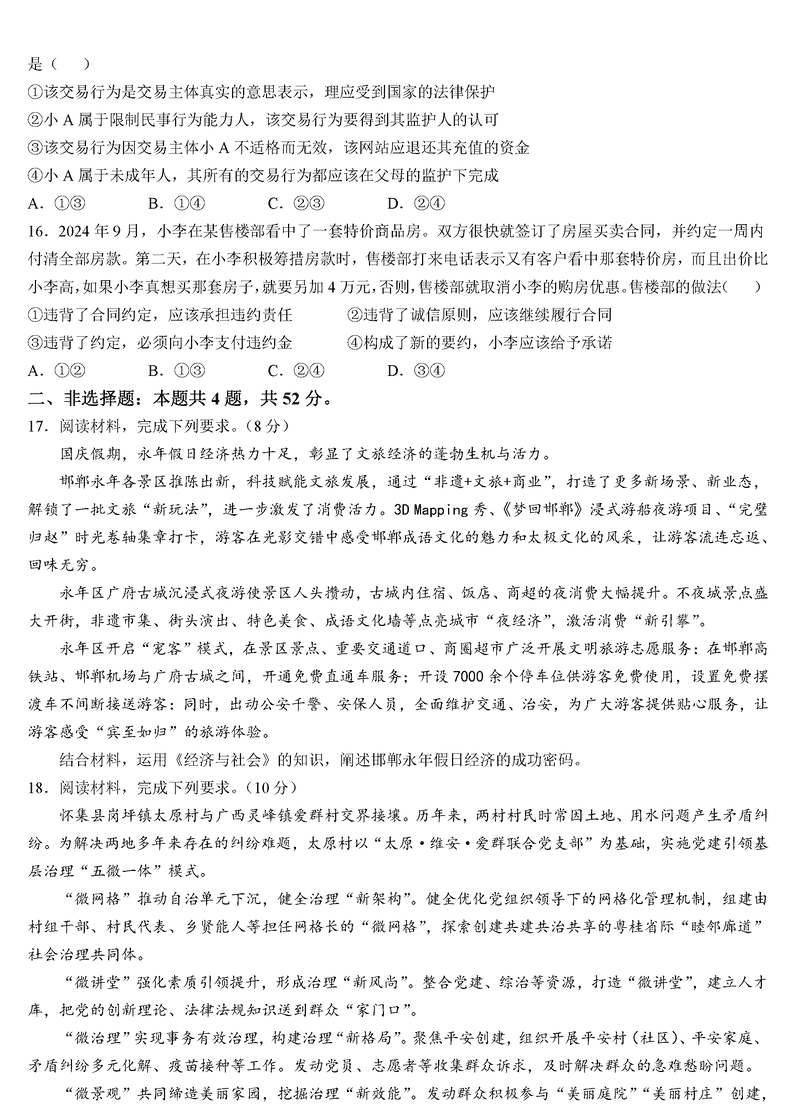 河北承德2024-2025学年高三上学期期中政治考试已于近日开考,为方便考生考后及时查看考试情况,查漏补缺、弥补不足,本文整理了试题答案解析相关信息!