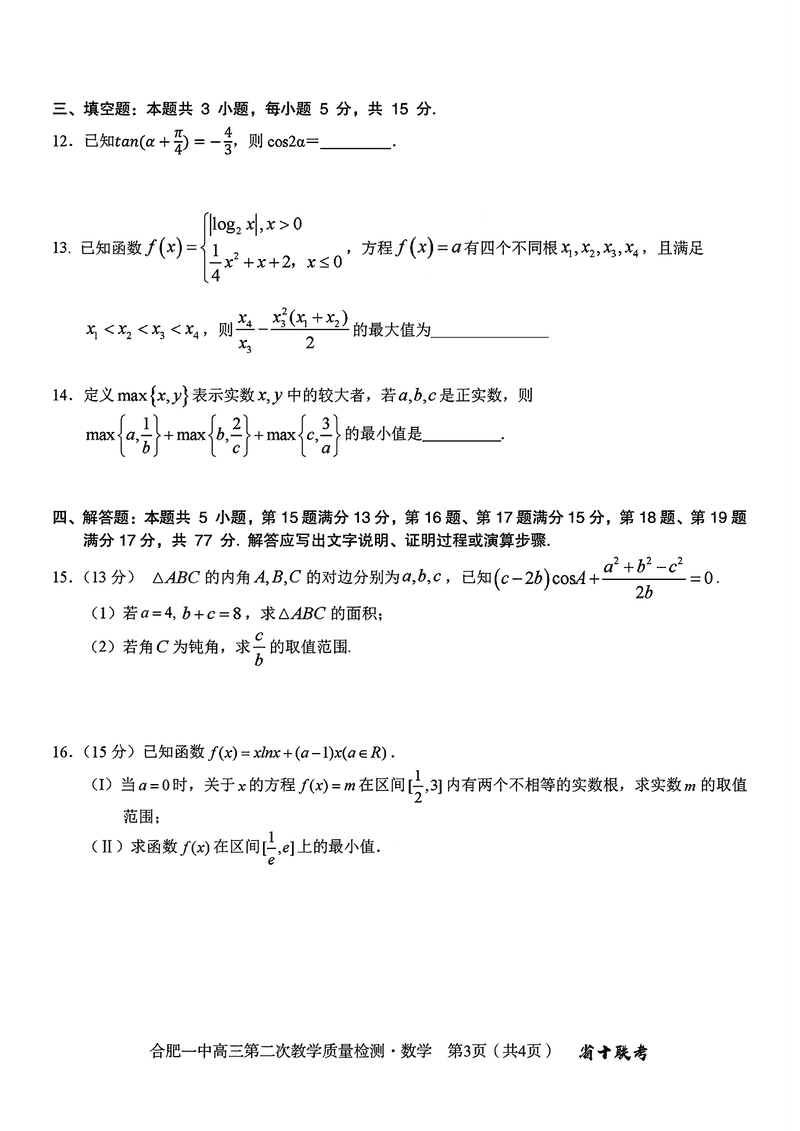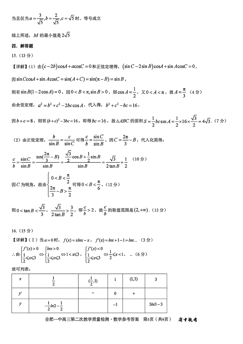 安徽省十联考合肥一中2025届高三11月第二次质检数学考试已于近日开考,为方便考生考后及时查看考试情况,查漏补缺、弥补不足,本文整理了试题答案解析相关信息!