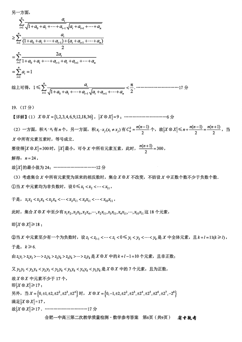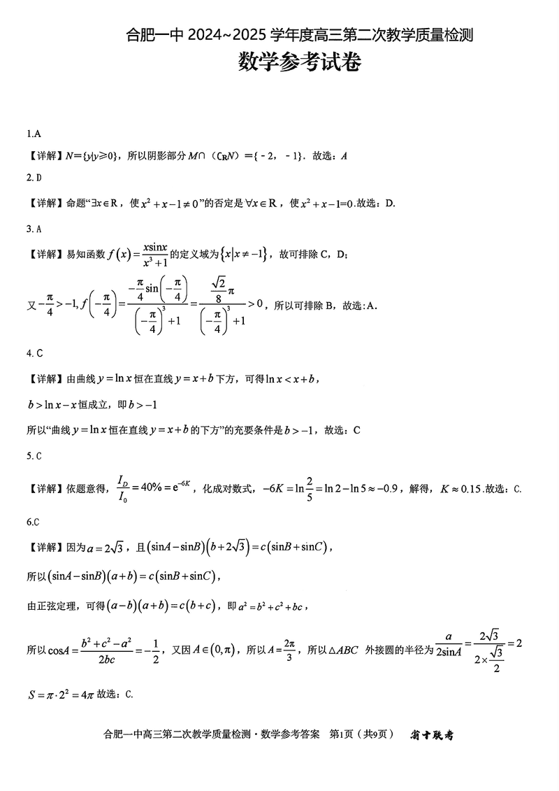 安徽省十联考合肥一中2025届高三第二次质检数学试题及答案