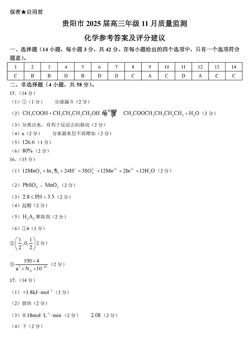贵阳市2025届高三上学期11月质量监测化学考试已于近日开考,为方便考生考后及时查看考试情况,查漏补缺、弥补不足,本文整理了试题答案解析相关信息!