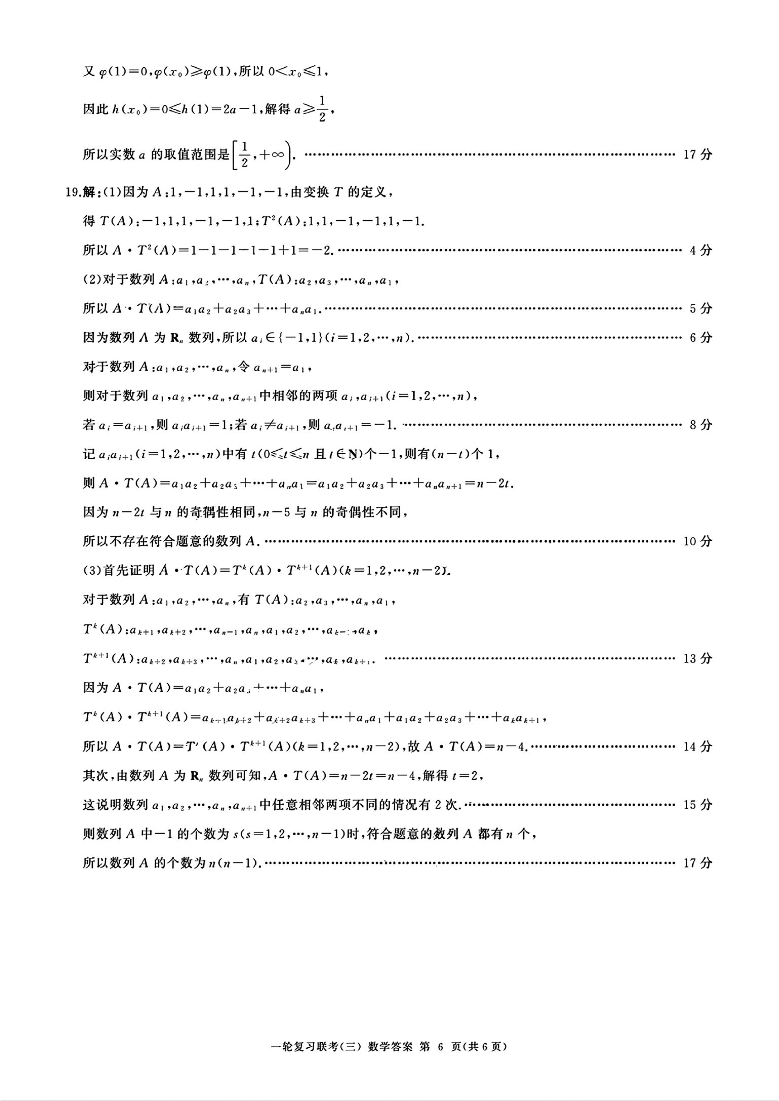 百师联盟2025届高三一轮复习联考(三)数学试题及答案