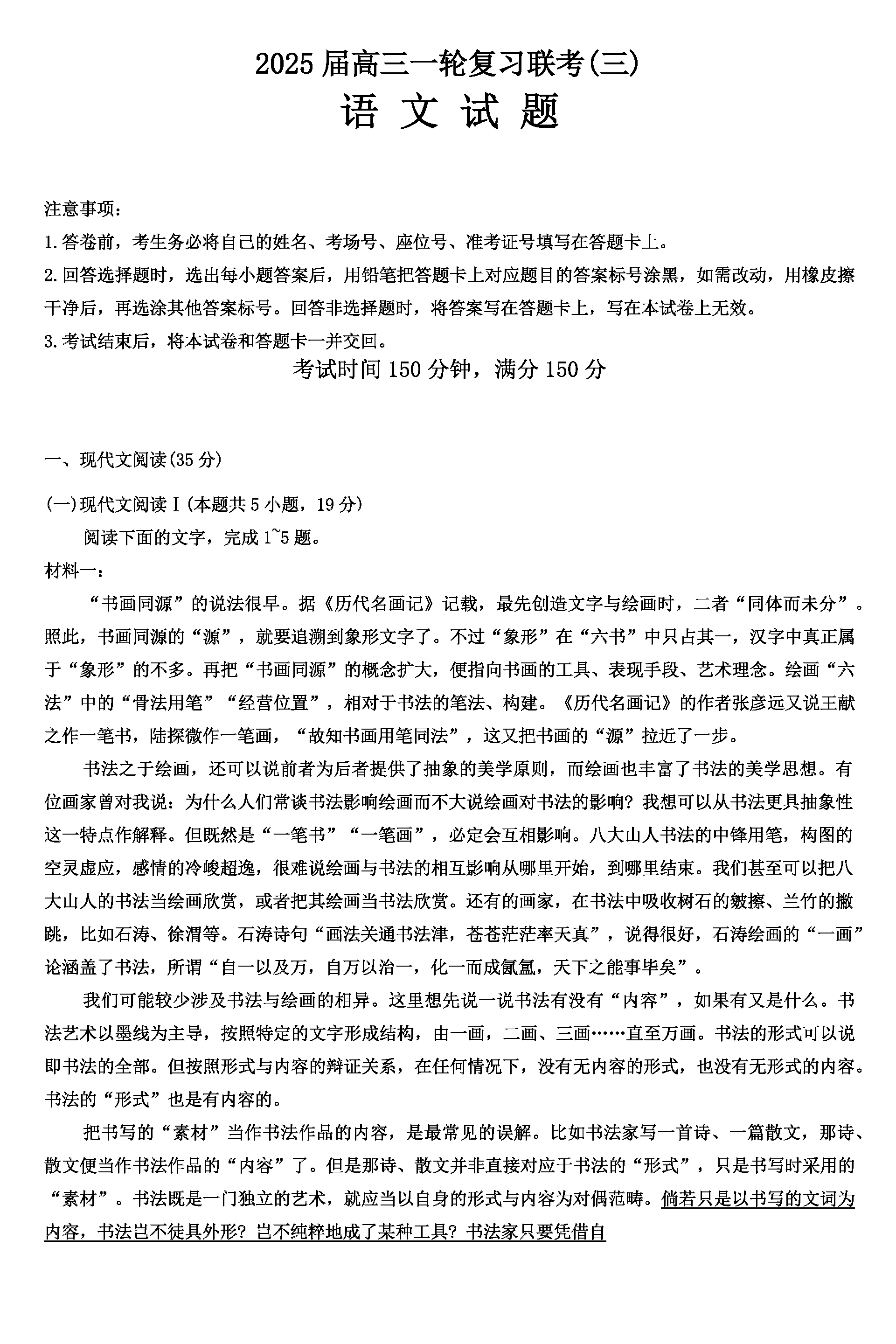 百师联盟2025届高三一轮复习联考(三)语文试题及答案