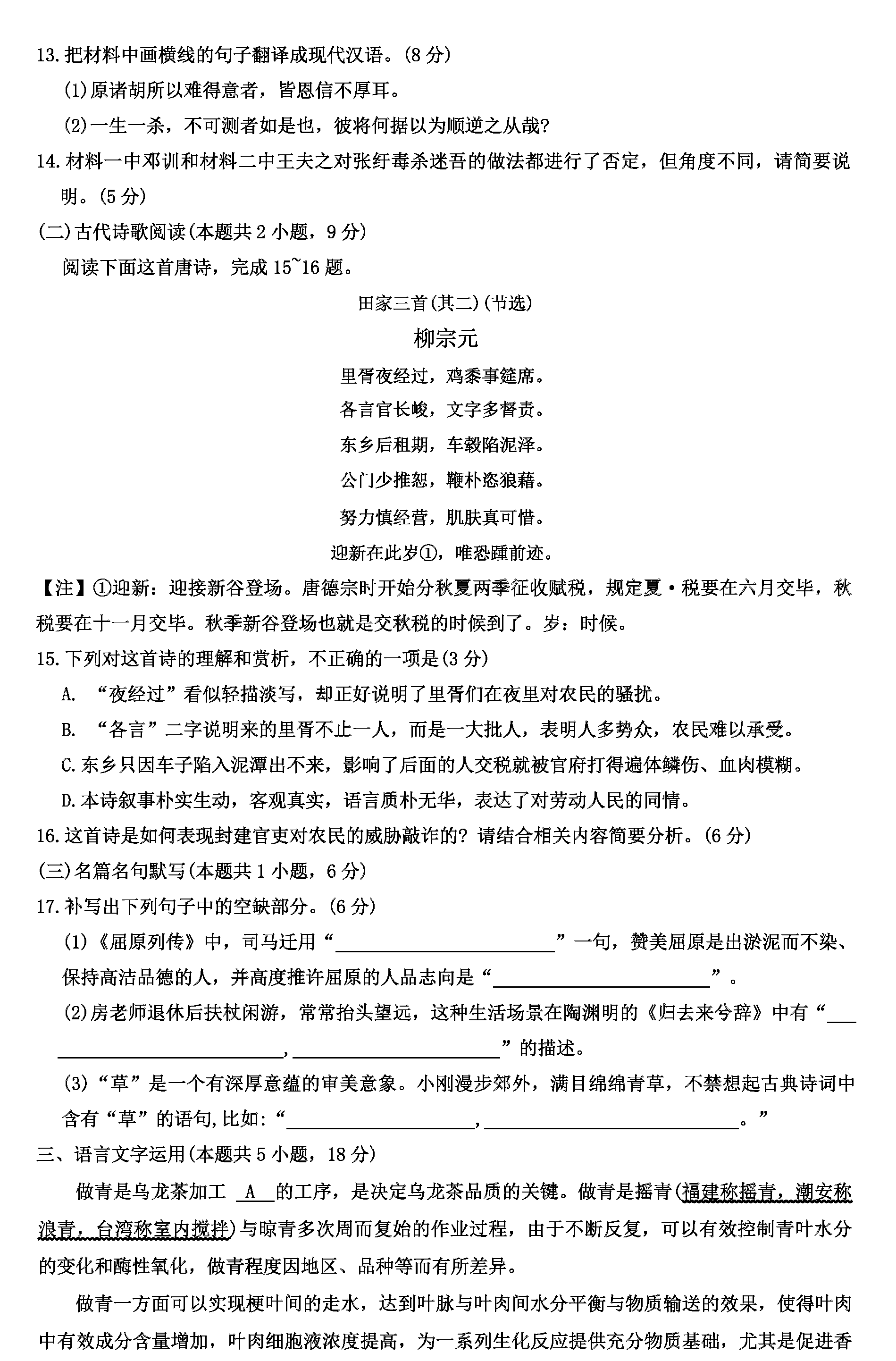 语文试题及答案解析