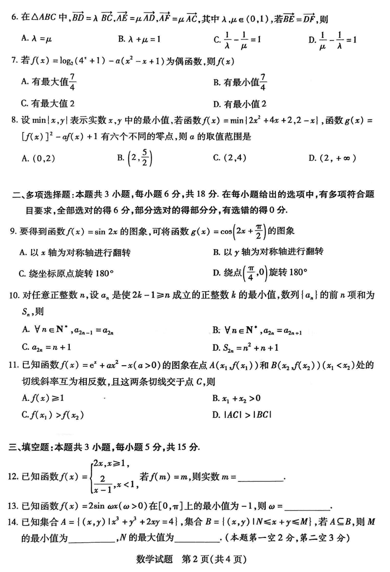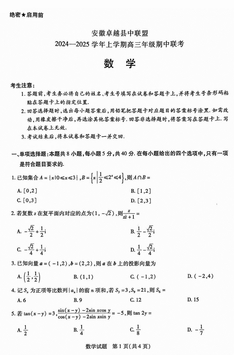 安徽卓越县中联盟2025届高三11月期中数学试题及答案