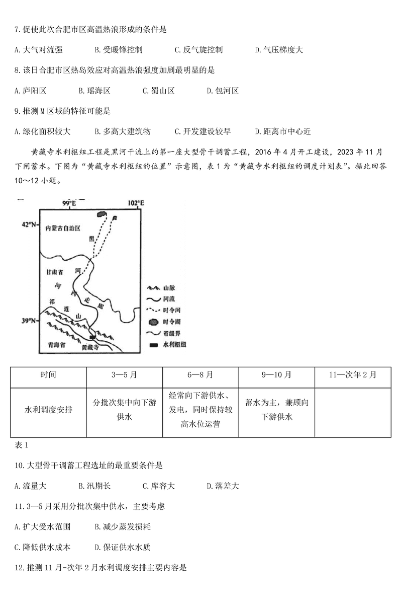 南通通州区、如东县2025届高三上学期期中联考地理试题及答案