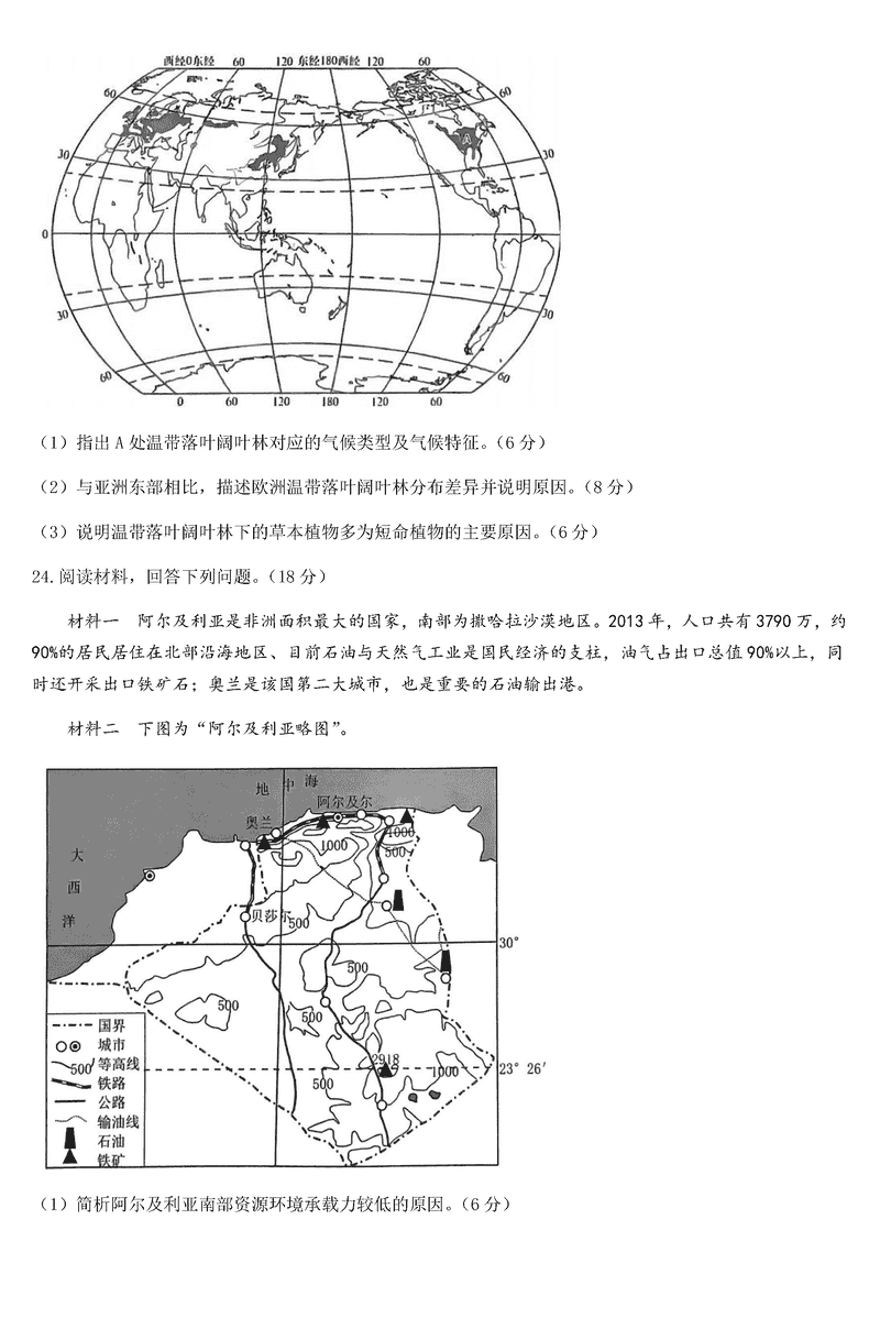 地理试题及答案解析