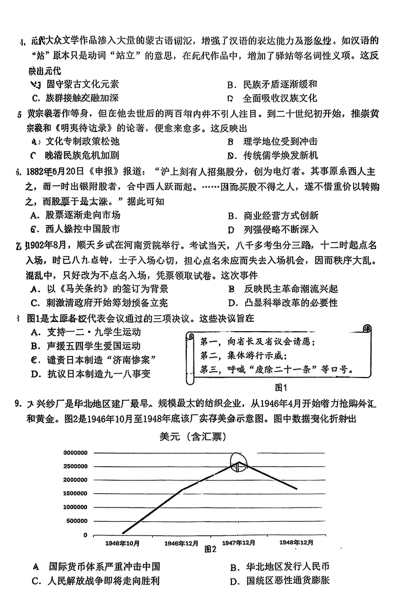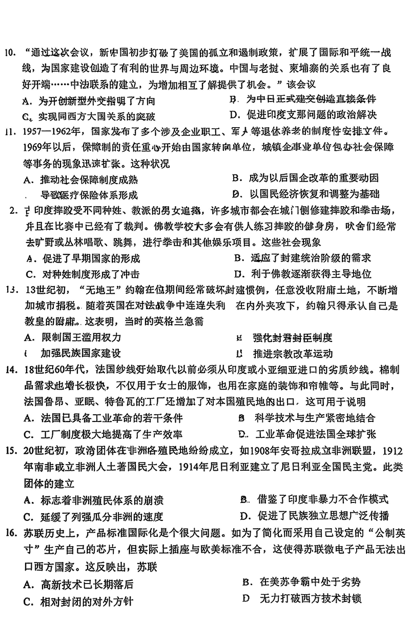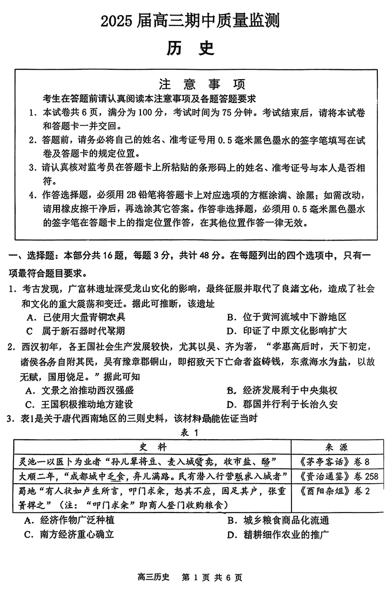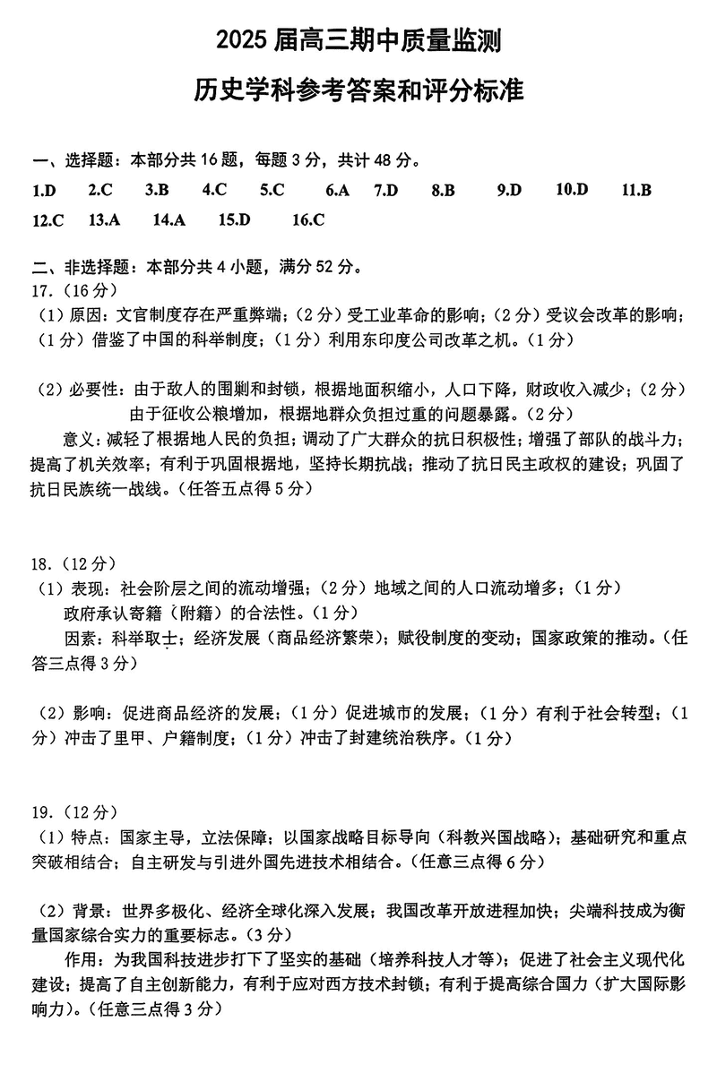 南通通州区、如东县2025届高三上学期期中联考历史试题及答案