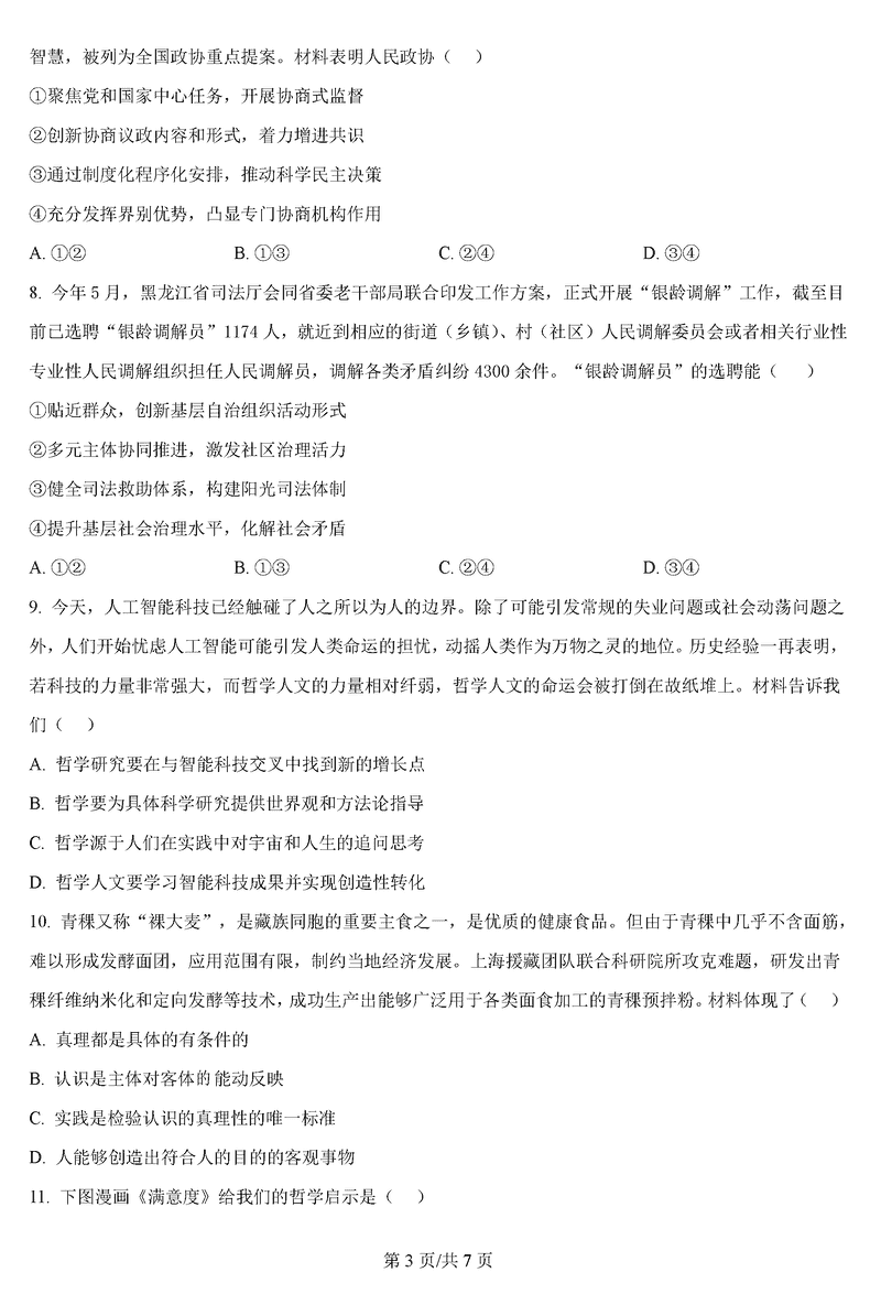 南通通州区、如东县2025届高三上学期期中联考政治试题及答案