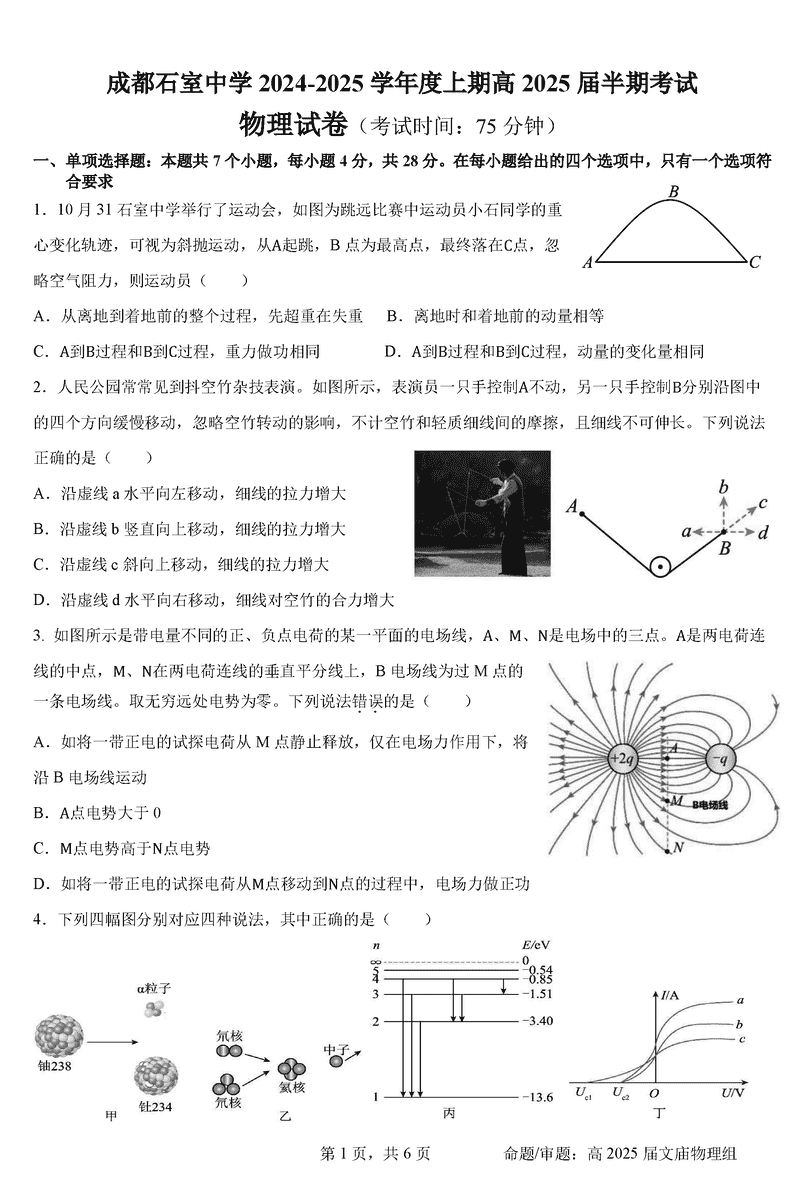 成都石室中学2025届高三11月期中物理考试已于近日开考,为方便考生考后及时查看考试情况,查漏补缺、弥补不足,本文整理了试题答案解析相关信息!