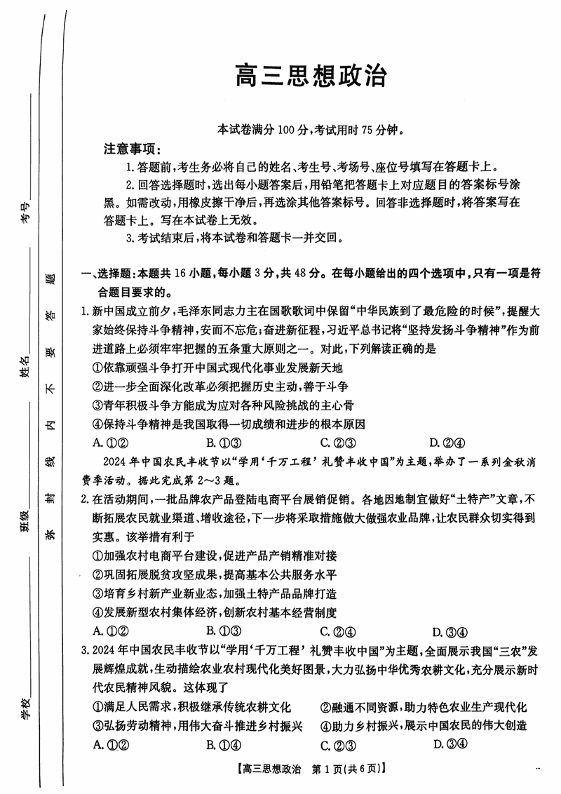 广东2025届高三金太阳11月联考政治试题及答案 时间:2024-11-30 18:09 广东 文综试题 广东2025届高三金太阳11月联考政治考试已于近日开考,为方便考生考后及时查看考试情况,查漏补缺、弥补不足,本文整理了试题答案解析相关信息! 汇总:广东2025届高三金太阳11月联考试题及答案汇总 政治试题及答案解析