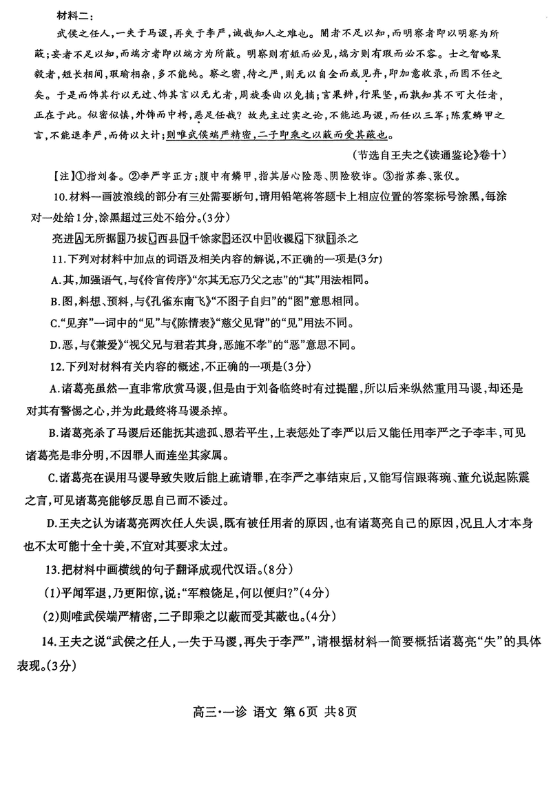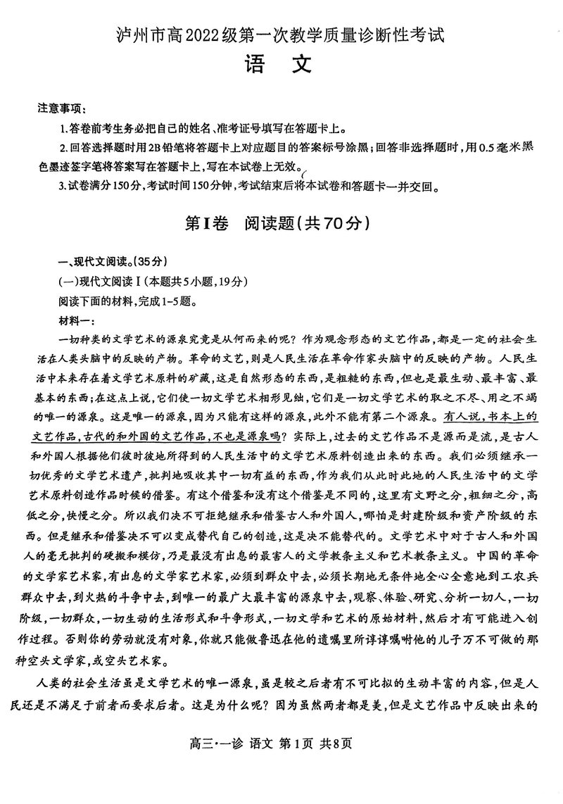 泸州一诊高2025届第一次教学质量诊断语文试题及答案