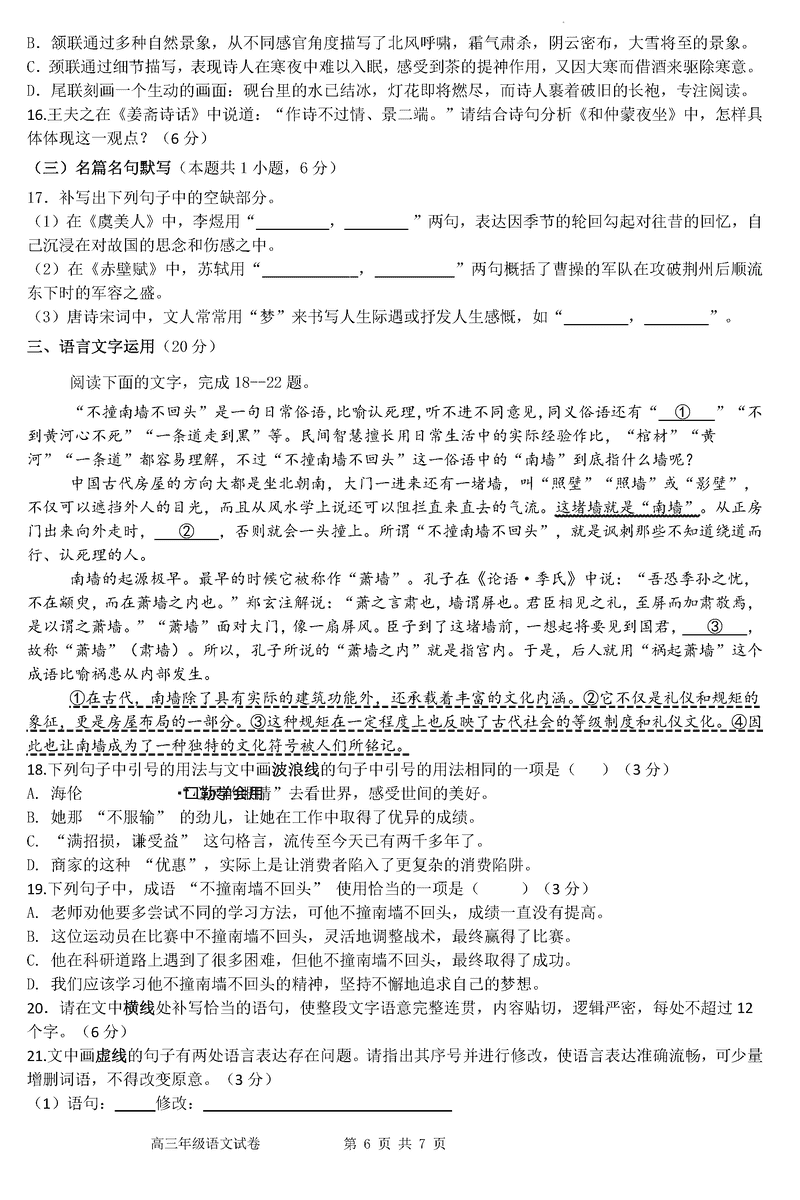 合肥六校联盟2025届高三上学期期中联考语文试题及答案