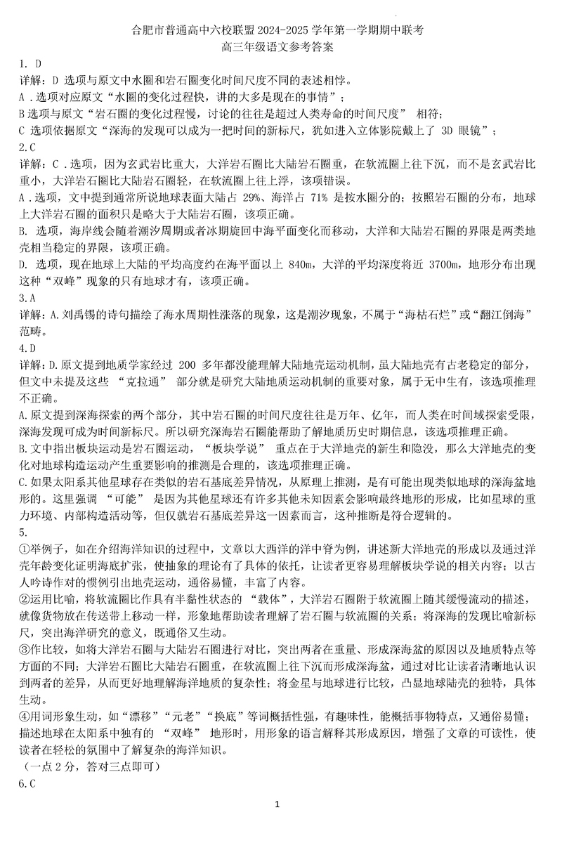 合肥六校联盟2025届高三上学期期中联考语文考试已于近日开考,为方便考生考后及时查看考试情况,查漏补缺、弥补不足,本文整理了试题答案解析相关信息!