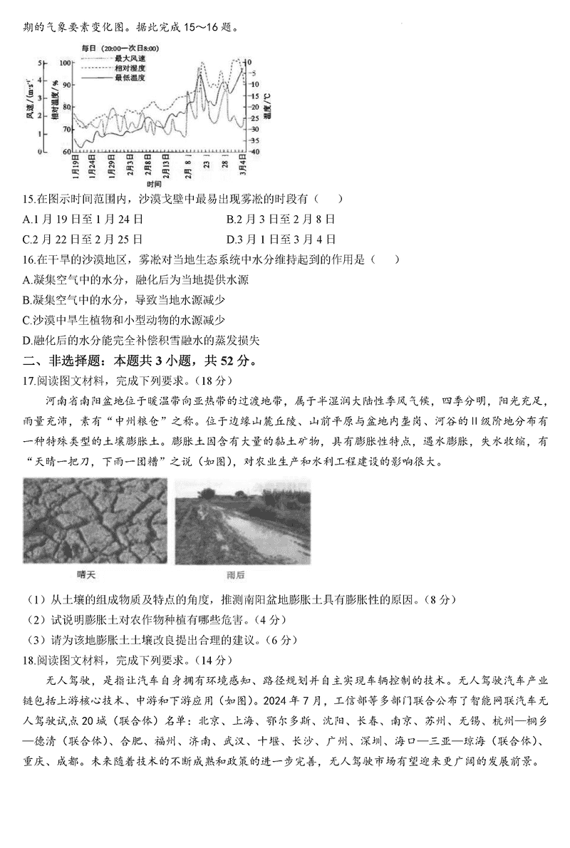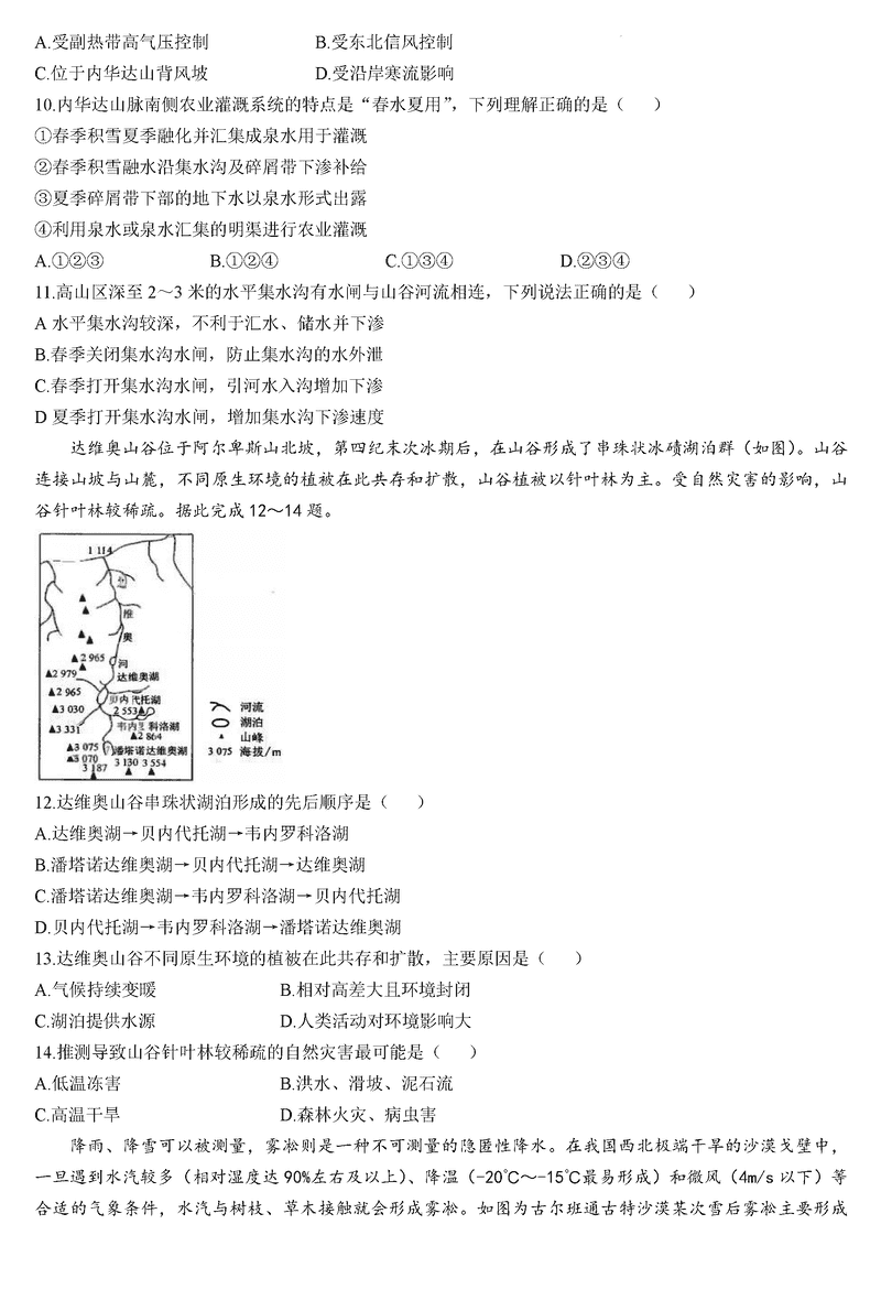 华大新高考联盟2025届高三11月教学质量测评地理试题及答案