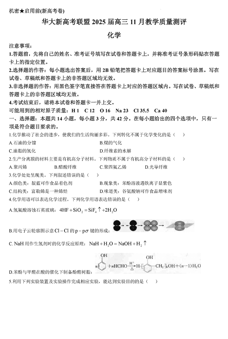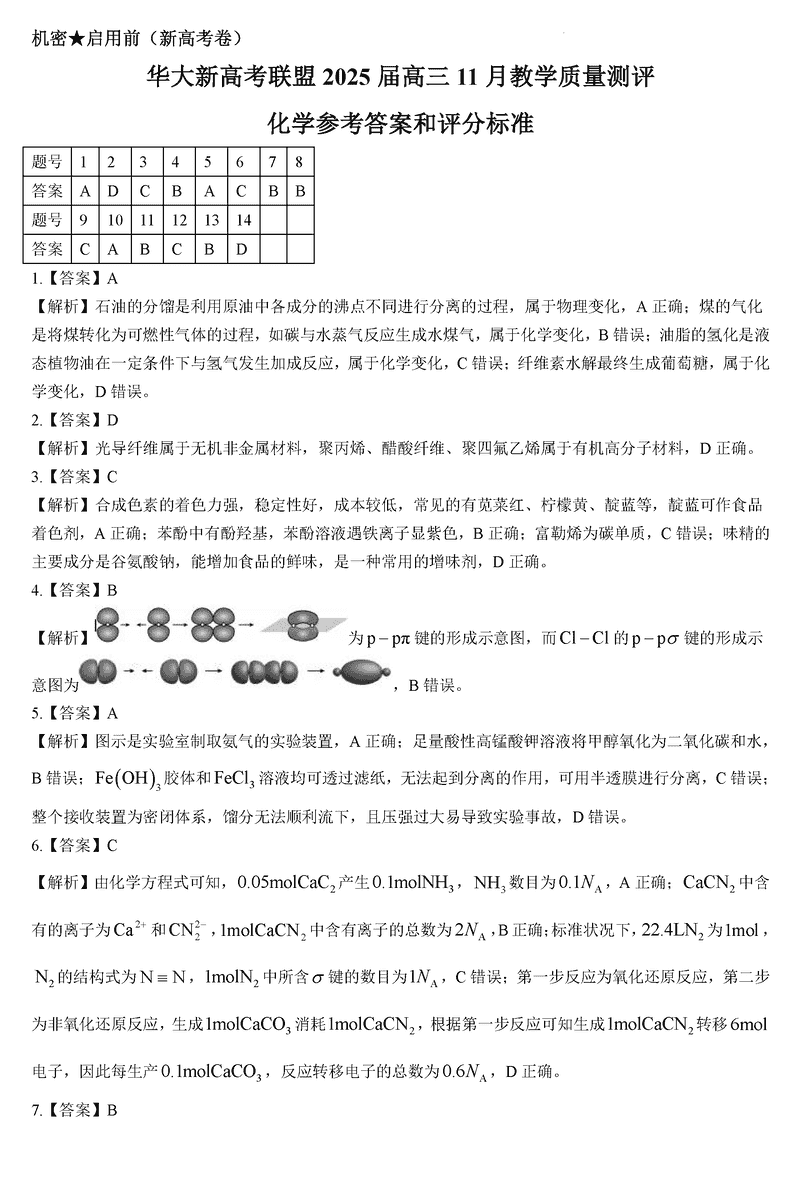 华大新高考联盟2025届高三11月教学质量测评化学考试已于近日开考,为方便考生考后及时查看考试情况,查漏补缺、弥补不足,本文整理了试题答案解析相关信息!