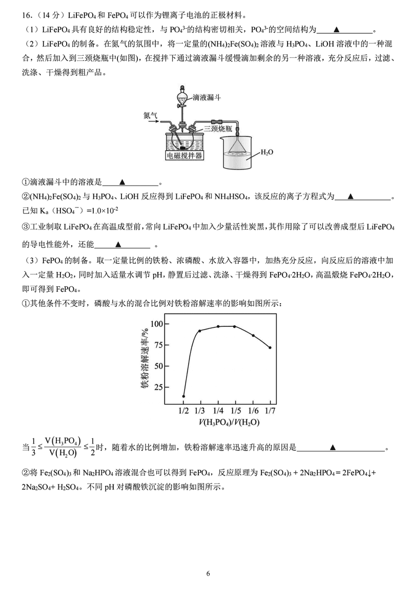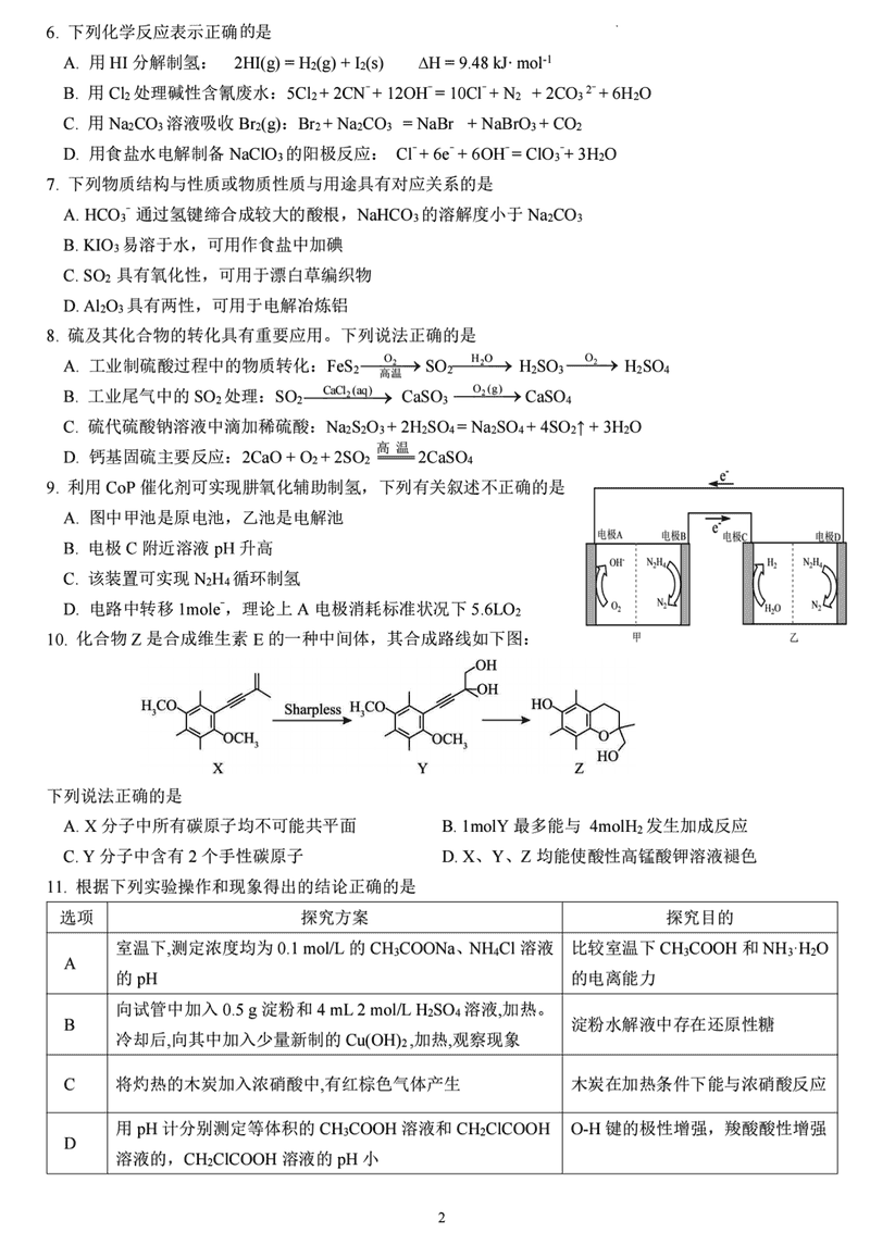 南京六校联合体2025届高三上学期11月联考化学试题及答案