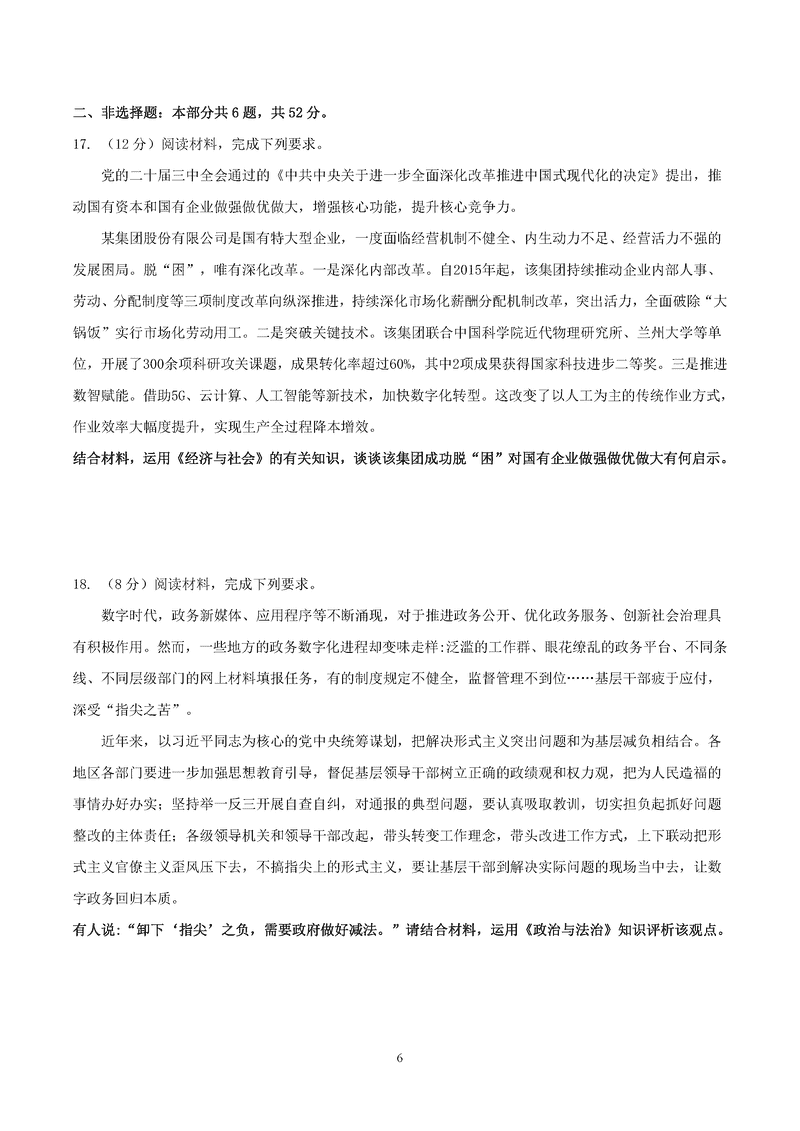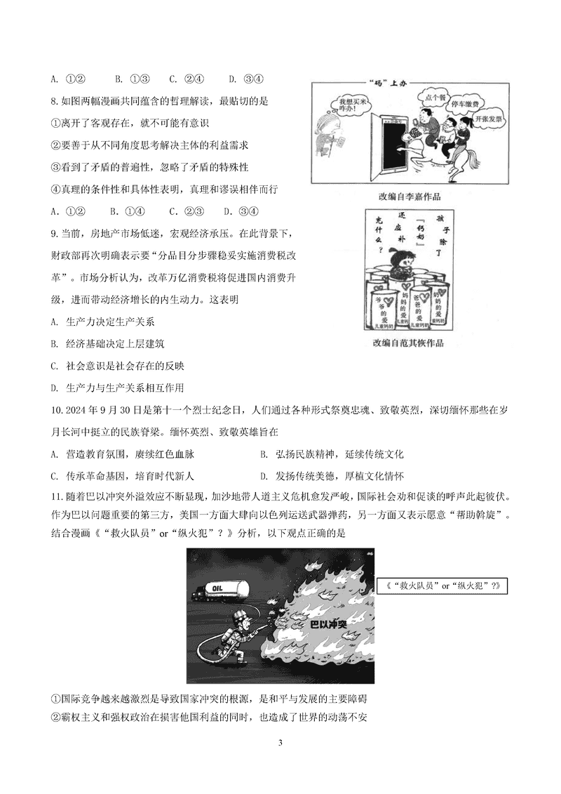 南京六校联合体2025届高三上学期11月联考政治试题及答案