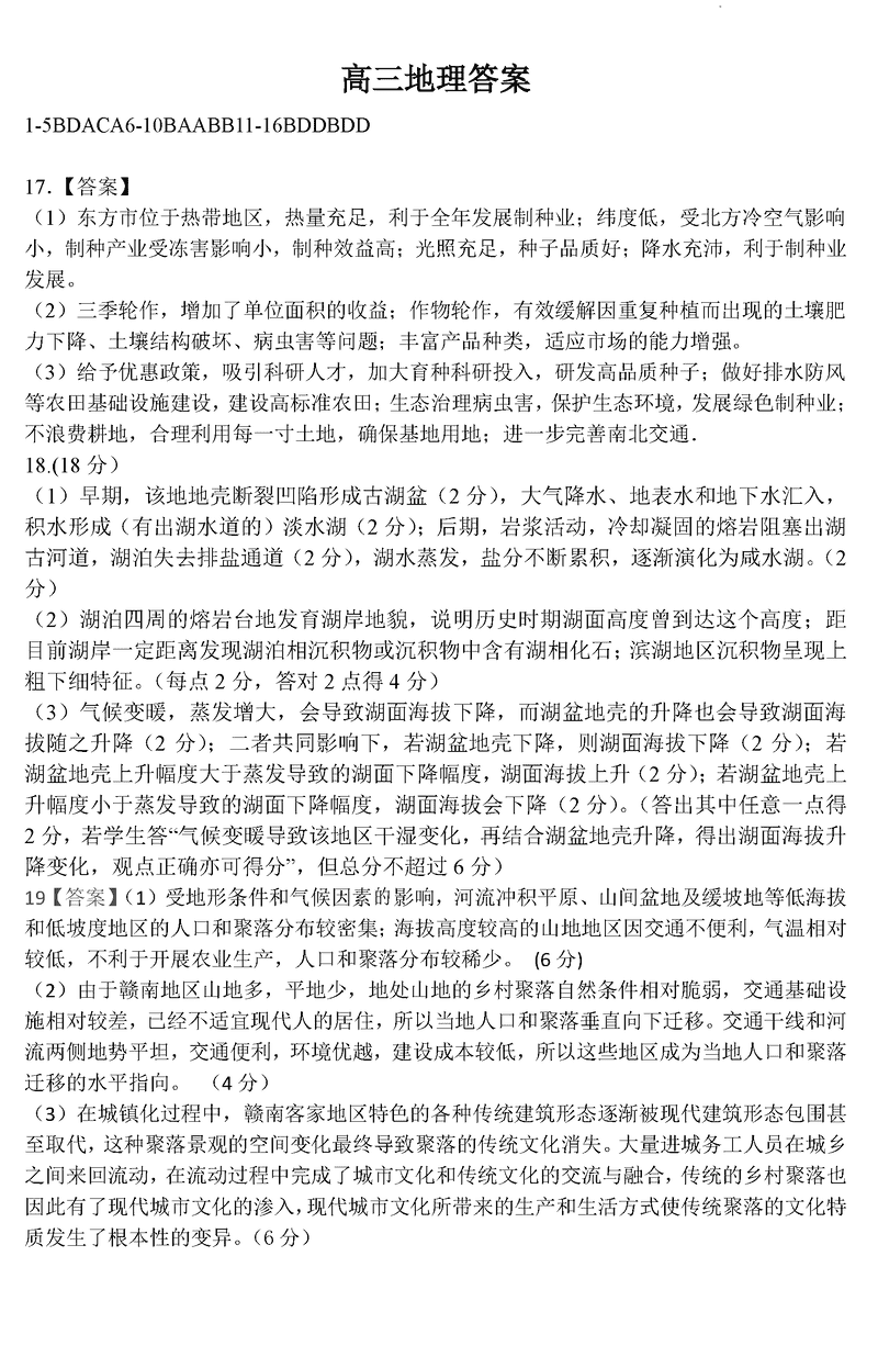 地理试题及答案解析