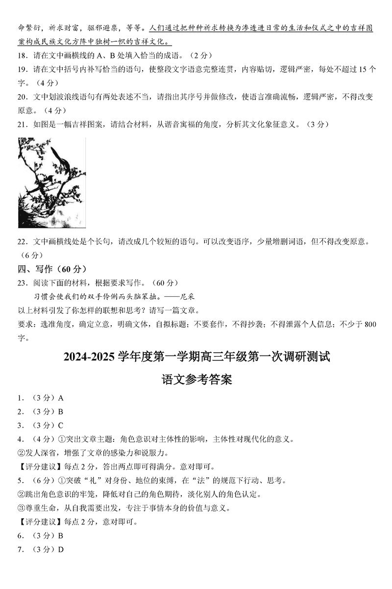 淮安市2025届高三上学期第一次调研测试语文考试已于近日开考,为方便考生考后及时查看考试情况,查漏补缺、弥补不足,本文整理了试题答案解析相关信息!