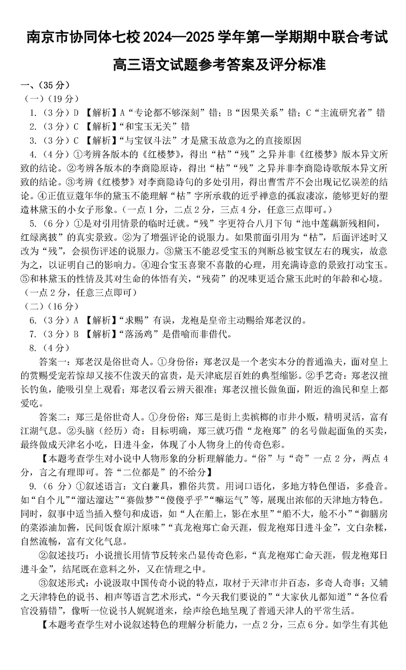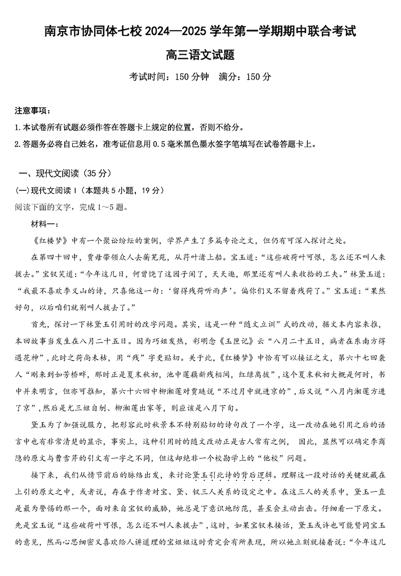 南京协同体七校2025届高三期中联考语文试题及答案 时间:2024-12-02 17:32 江苏 语文试题 南京协同体七校2025届高三期中联考语文考试已于近日开考,为方便考生考后及时查看考试情况,查漏补缺、弥补不足,本文整理了试题答案解析相关信息! 汇总:南京协同体七校2025届高三期中联考试题及答案汇总 语文试题及答案解析