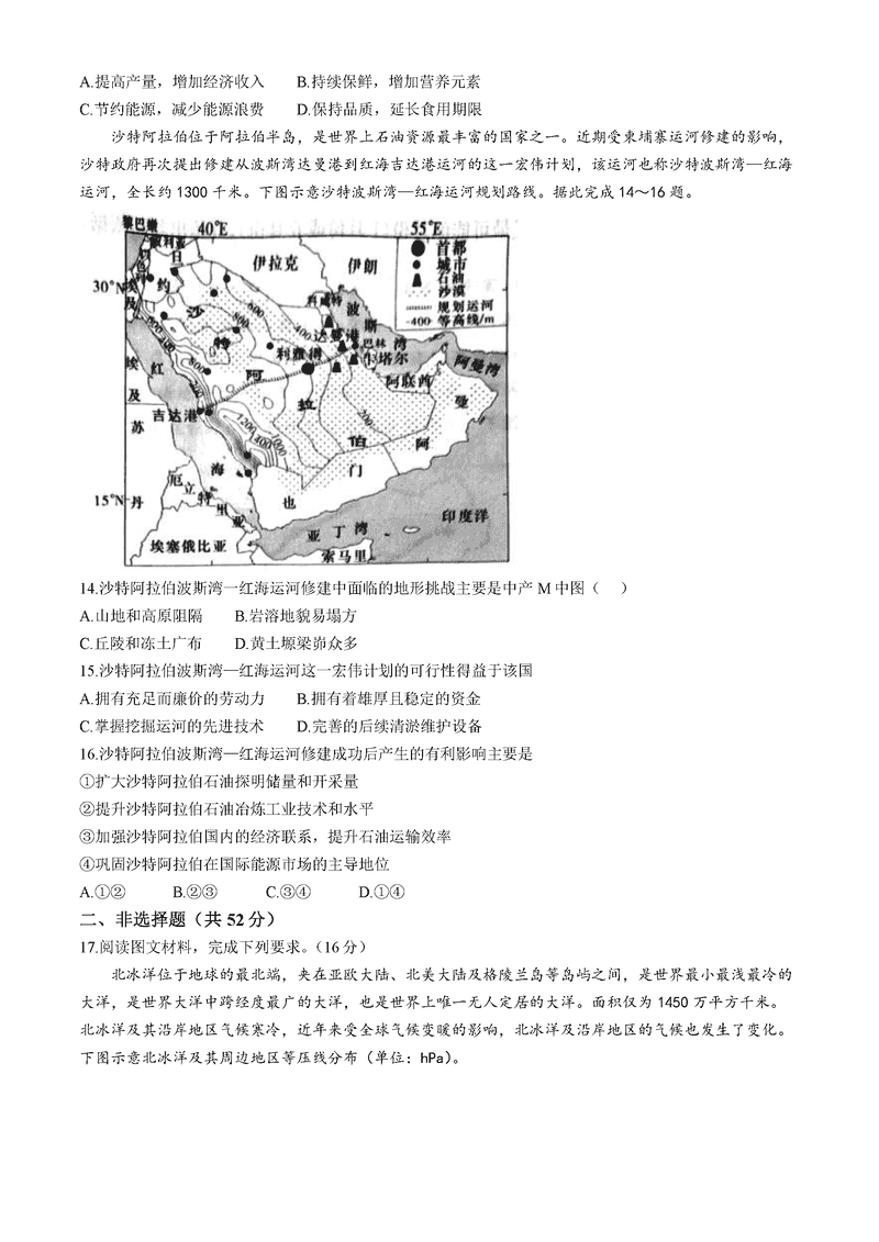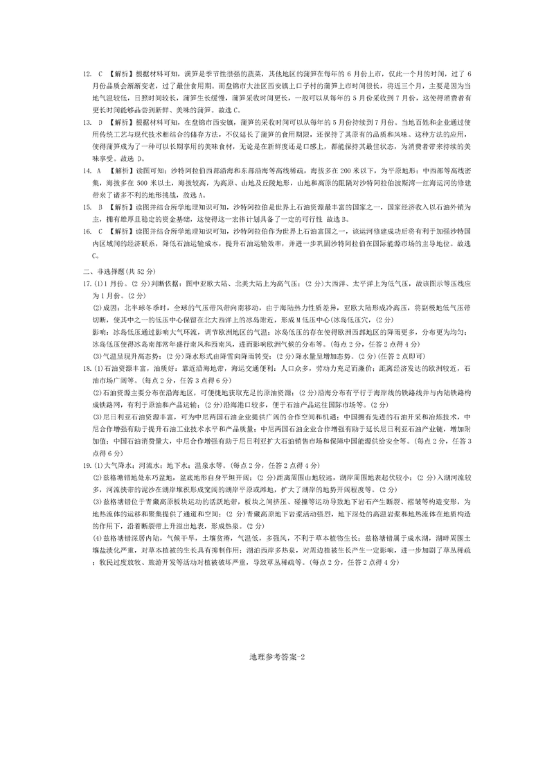 地理试题及答案解析