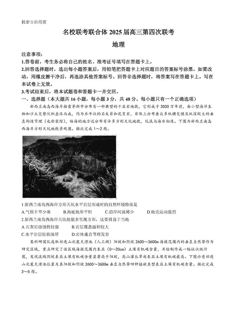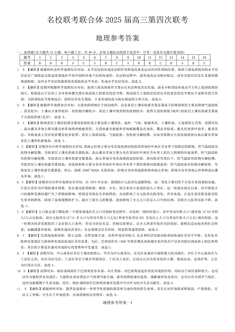 湖南名校联考联合体2025届高三第四次联考地理试题及答案