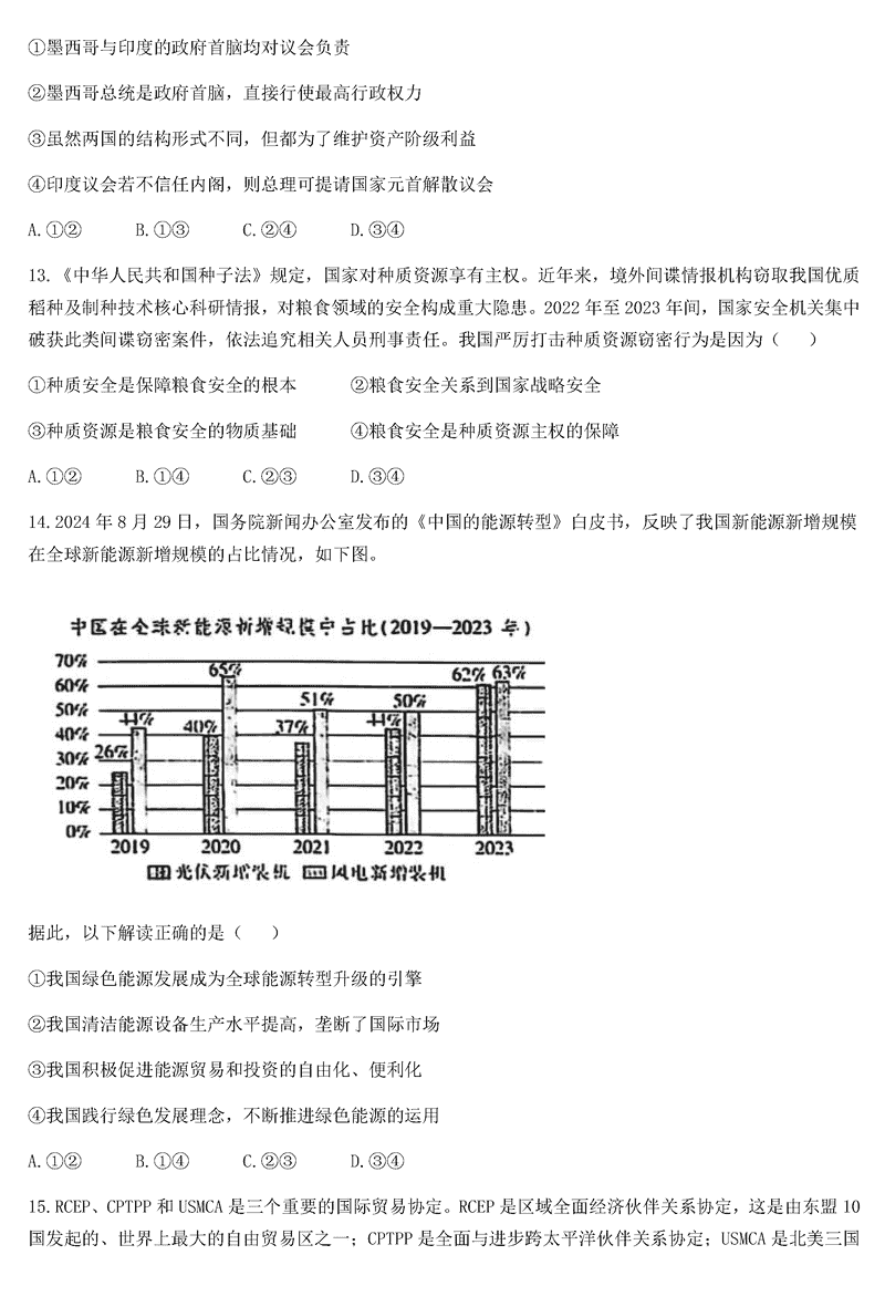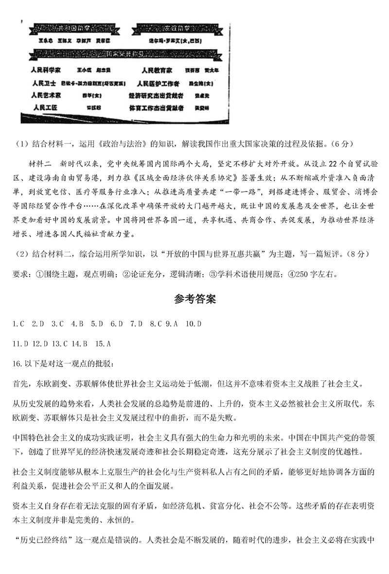 政治试题及答案解析