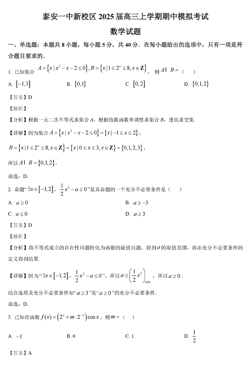 山东泰安一中2025届高三上学期11月月考数学考试已于近日开考,为方便考生考后及时查看考试情况,查漏补缺、弥补不足,本文整理了试题答案解析相关信息!