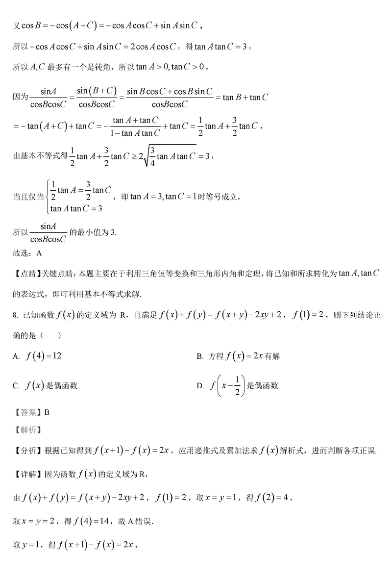 山东泰安一中2025届高三上第二次质检数学试题及答案